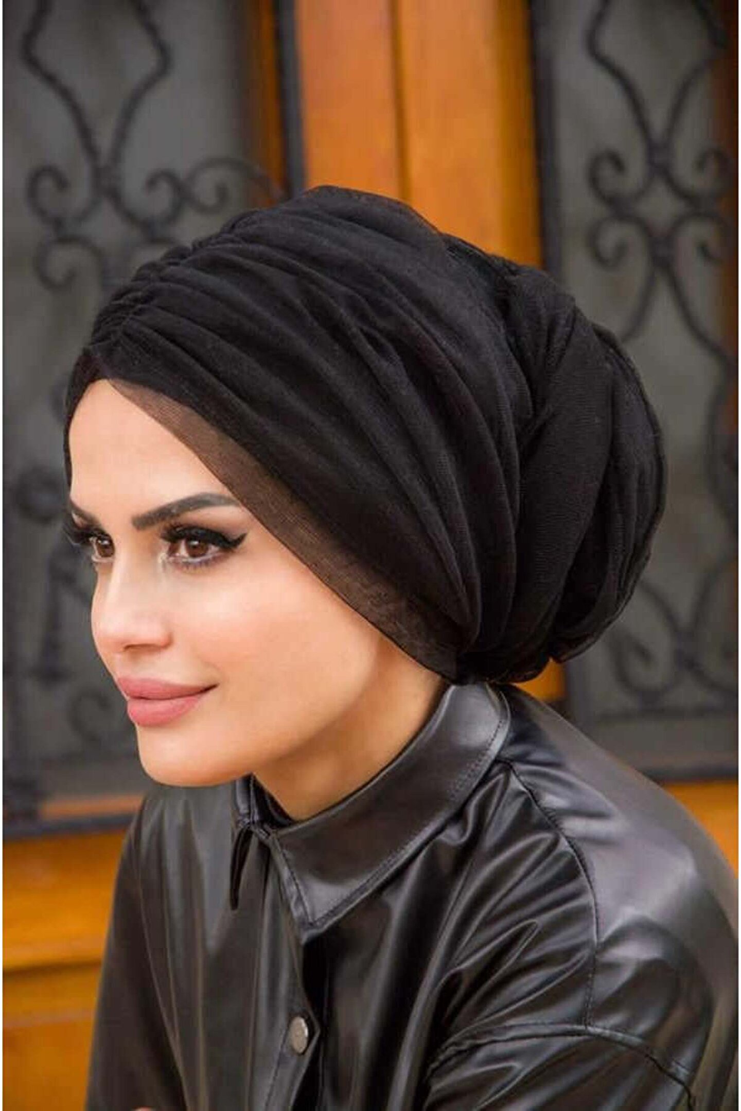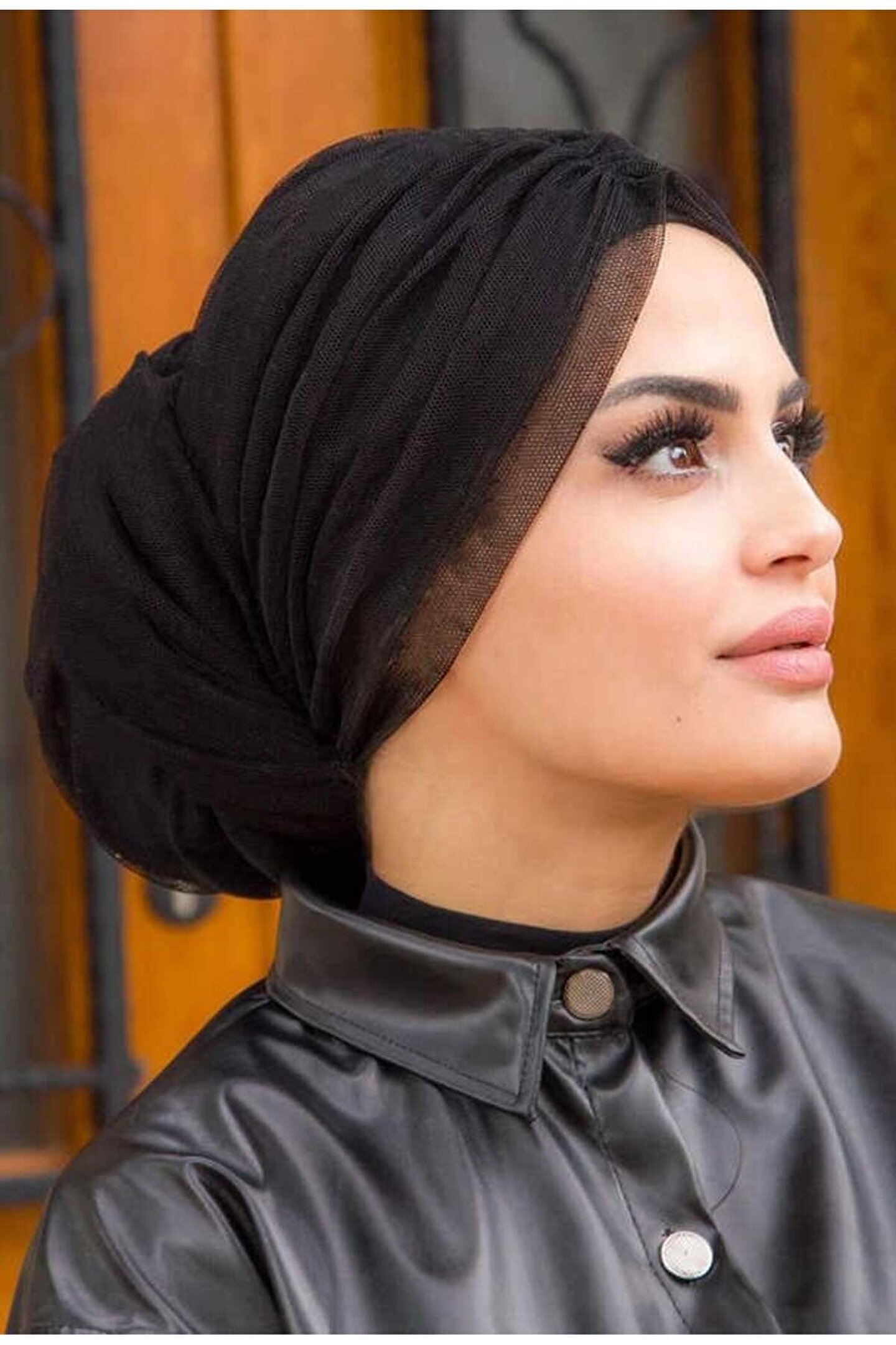 Tesettür giyim koleksiyonuna özel tasarlanmış, şık ve gece kullanımına uygun siyah tül büzgülü dolama bone; Örme kumaş yapısı ile konforlu bir kullanım sunar ve tüm yaş gruplarına hitap eder; Kolay bakım imkanı sağlayan yıkama talimatları ile pratik kullanım sağlar; %80 poliamid ve %20 likra materyal bileşeni sayesinde esneklik ve dayanıklılık sunar;