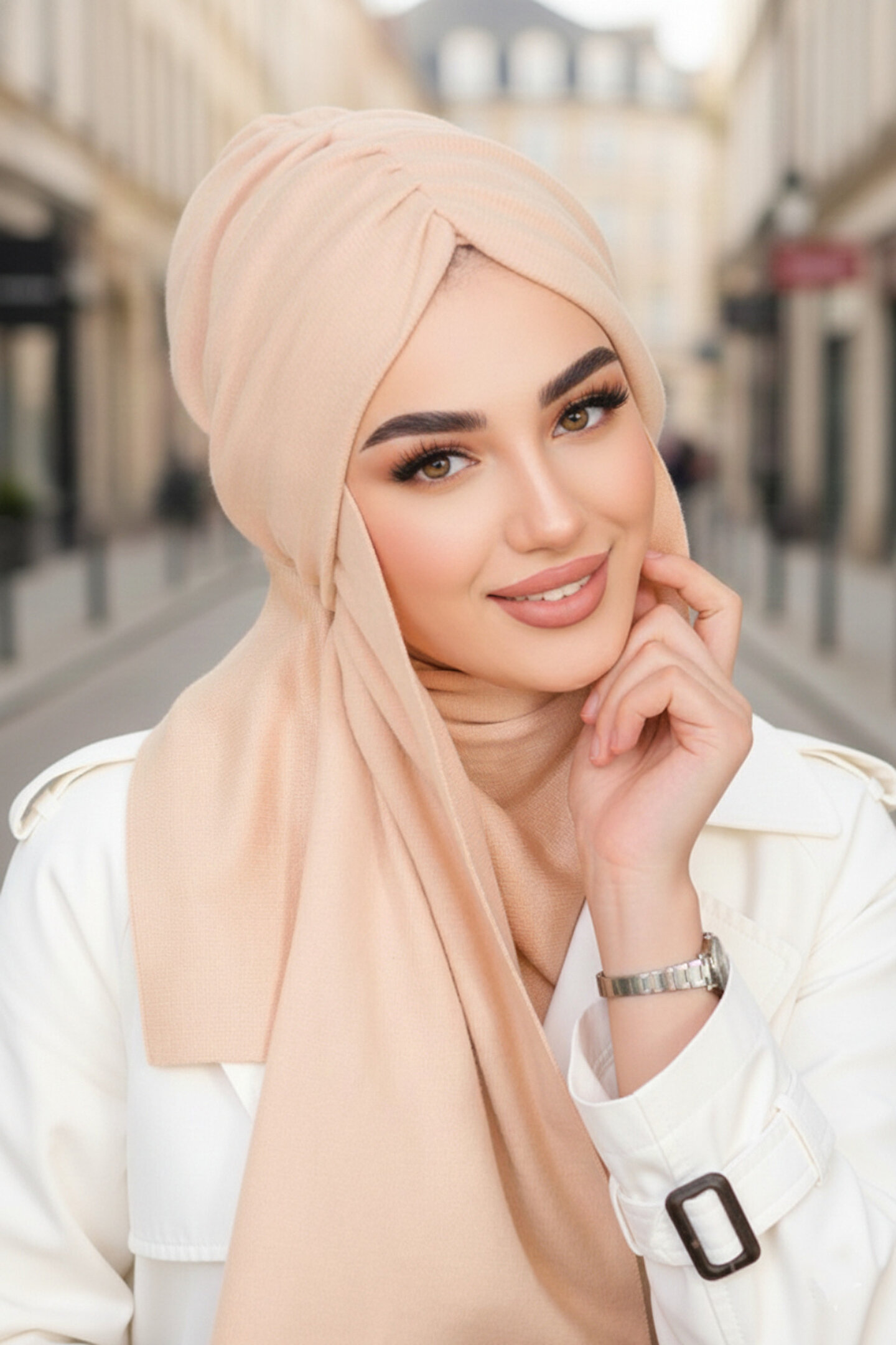 Aişe tesettür Somon Nude Serisi Kelebek Model Büzgülü Bone Şal