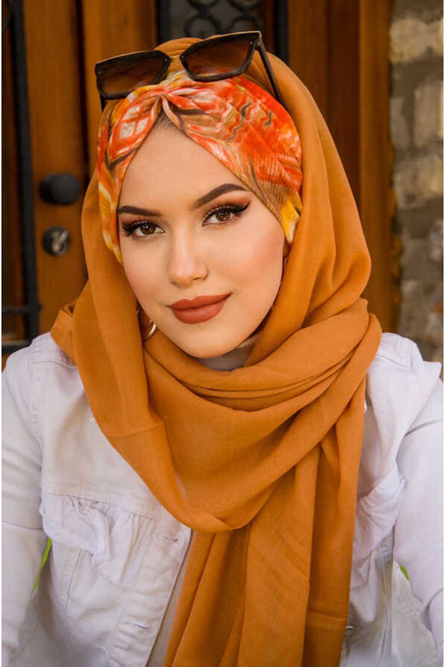 Gülkurusu Çiçek Desenli Hazır Şifon Şal