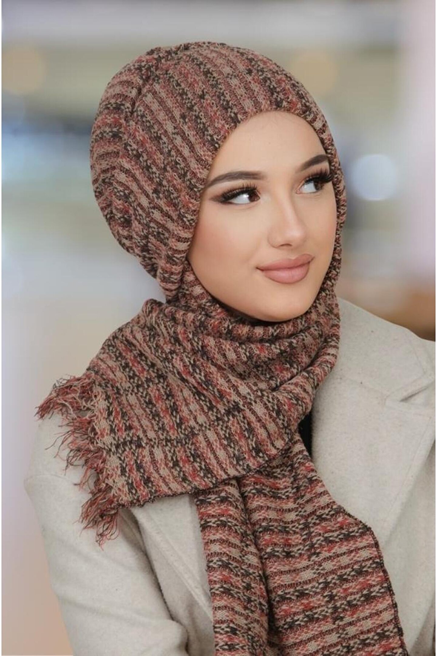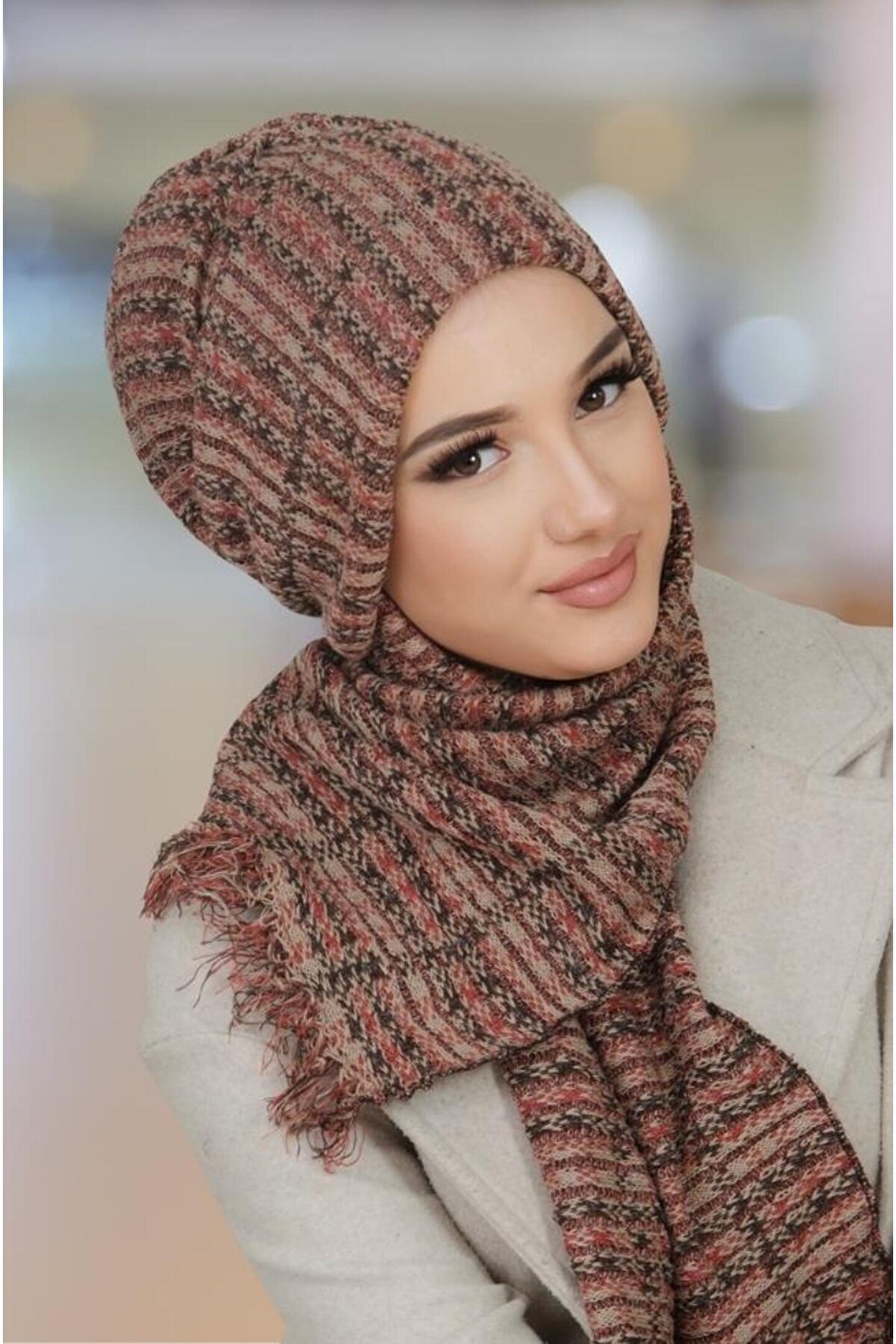 Aişe tesettür Taba Triko Kelebek Bone Şal