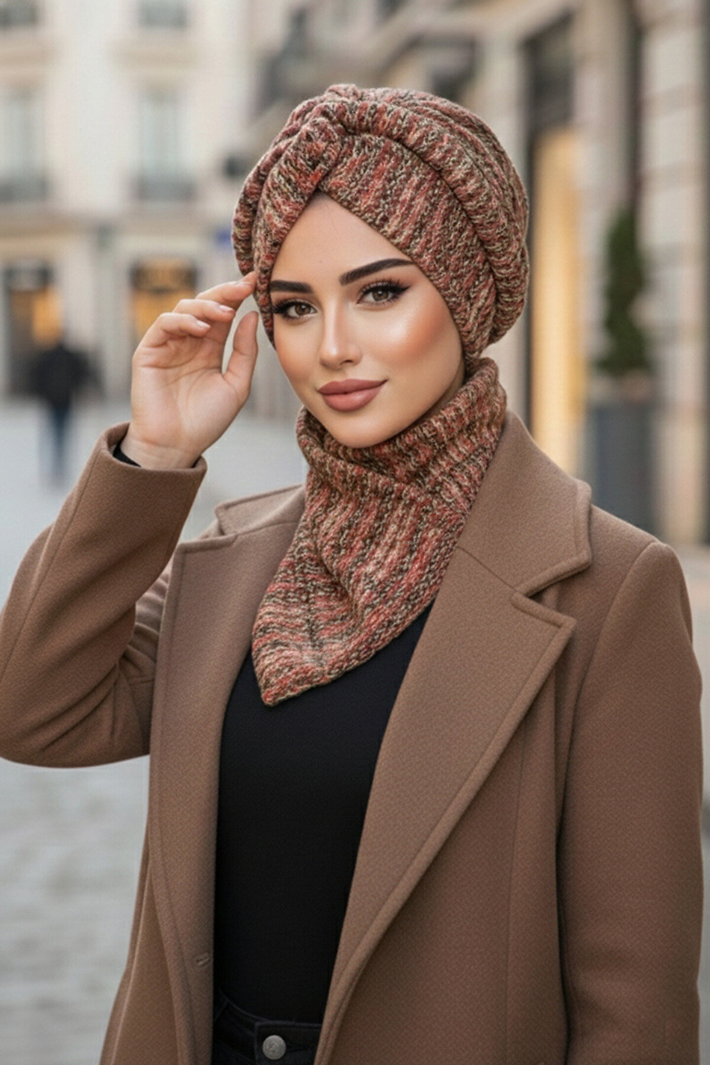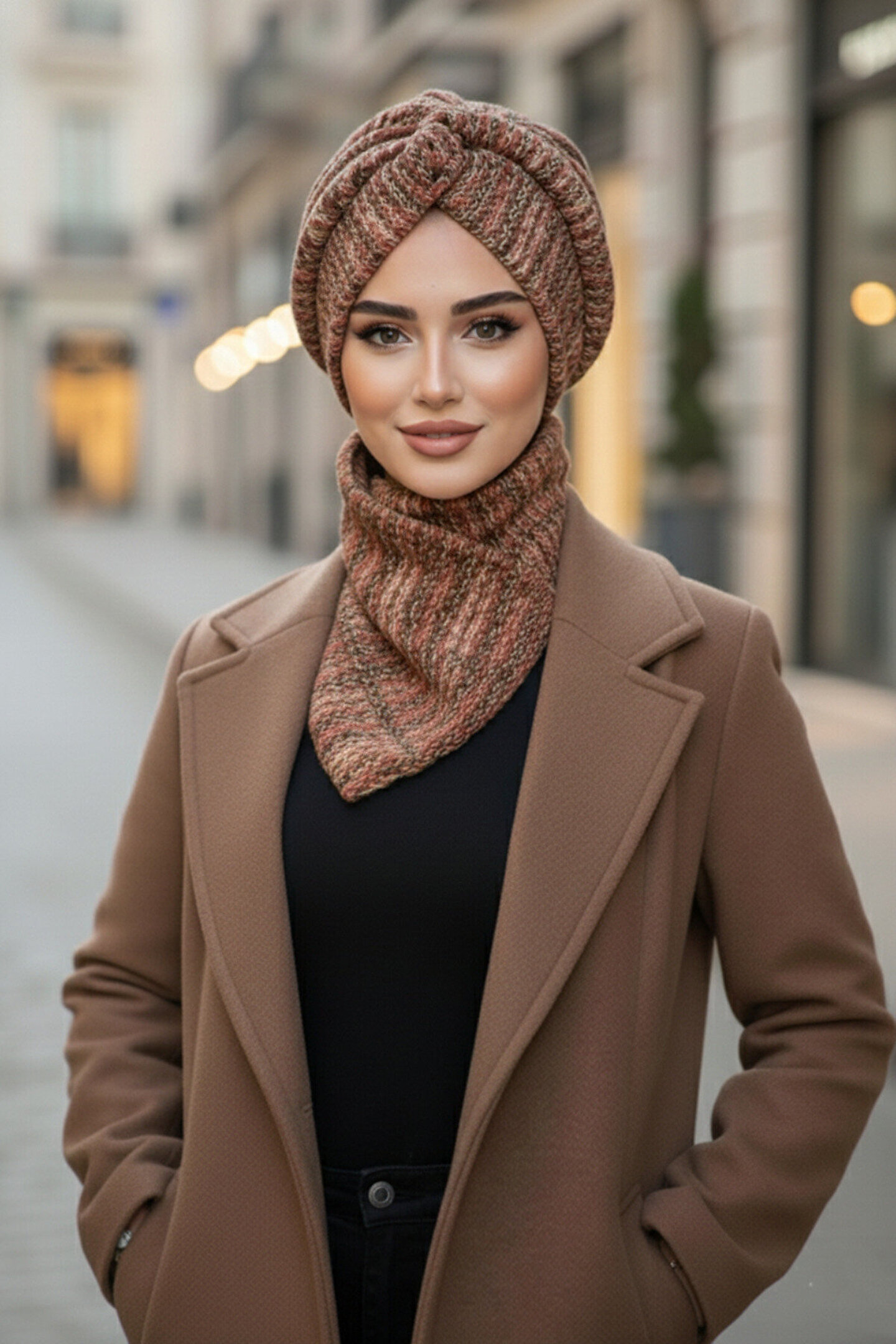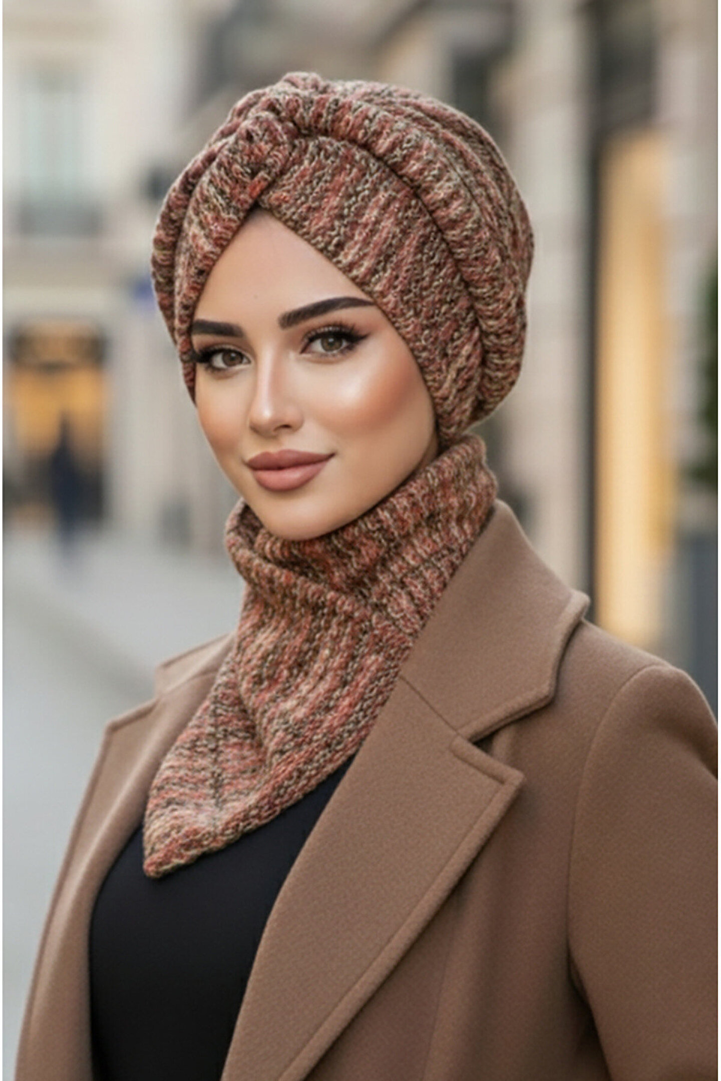 Aişe tesettür Taba Triko Kışlık Burgu Bone Ve Etol Takım