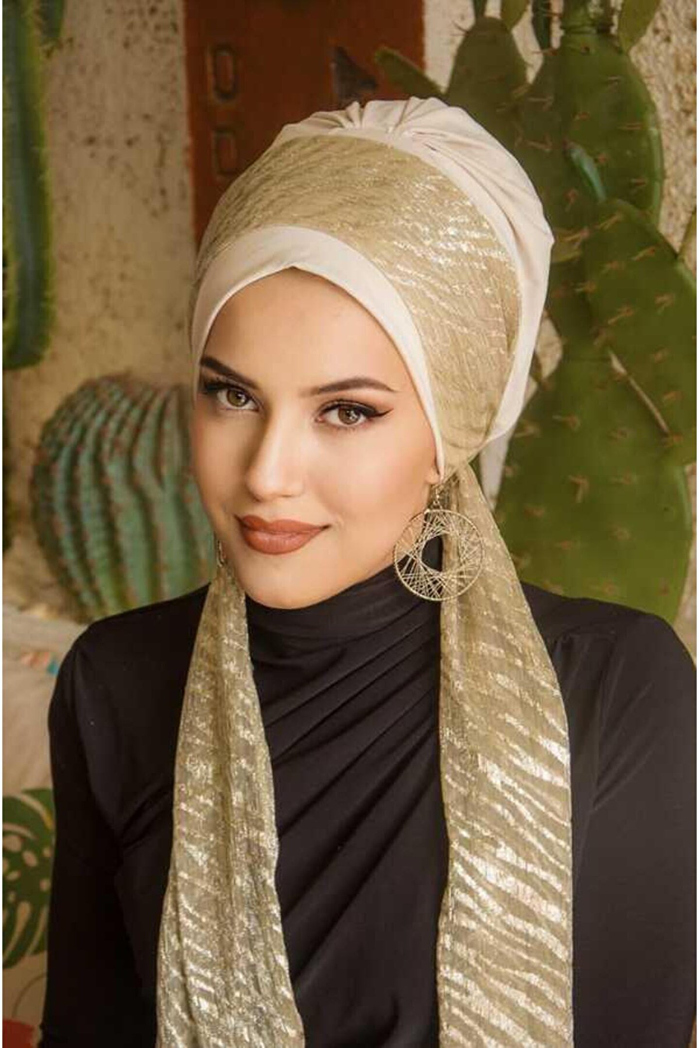 Aişe tesettür Taş Dore Desen Fularlı Bone