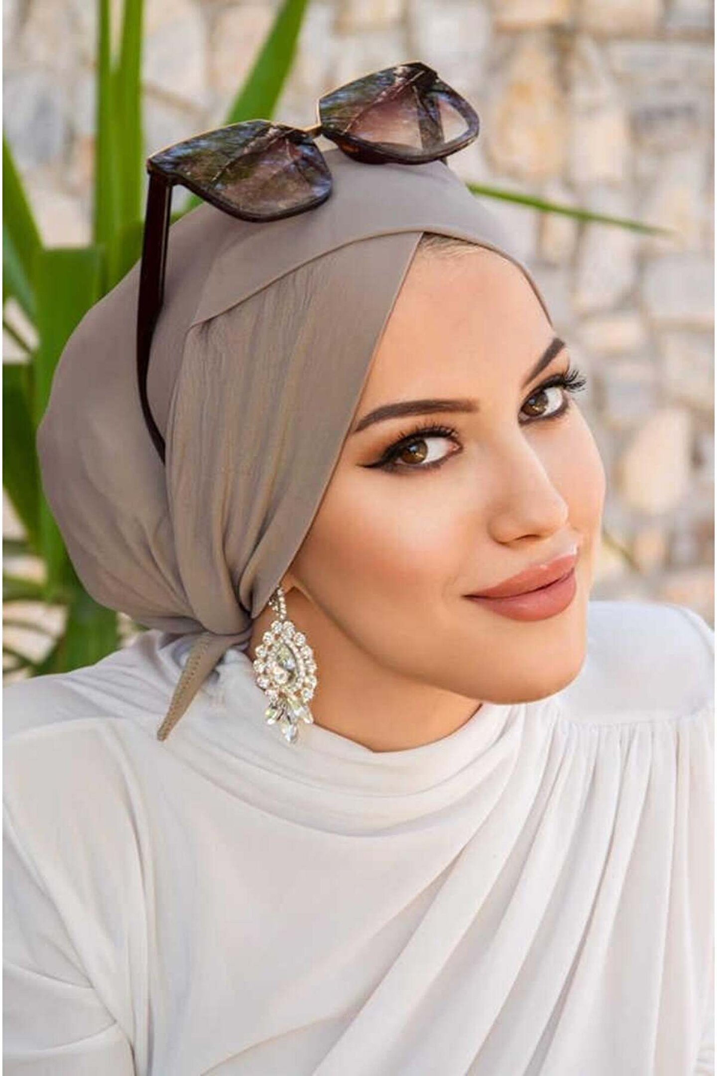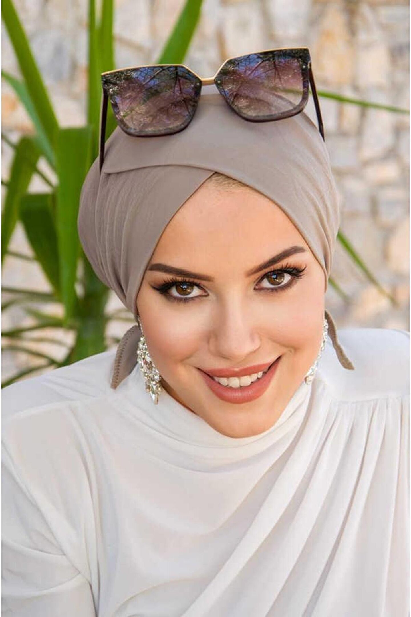 Aişe tesettür Taş Rengi Çapraz Bone Deniz - Havuz Bonesi
