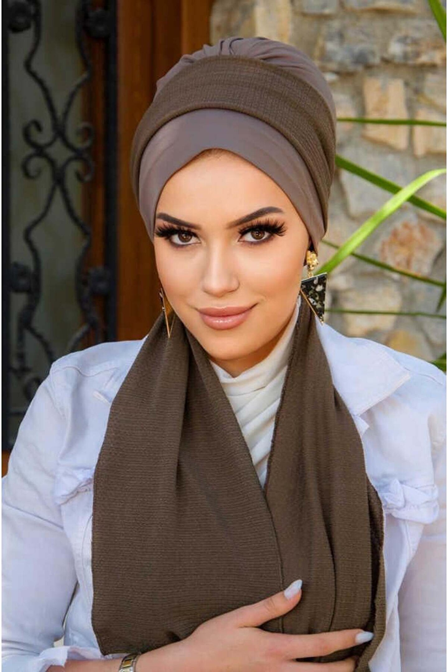 Aişe tesettür Vizon Kahve Fularlı Bone
