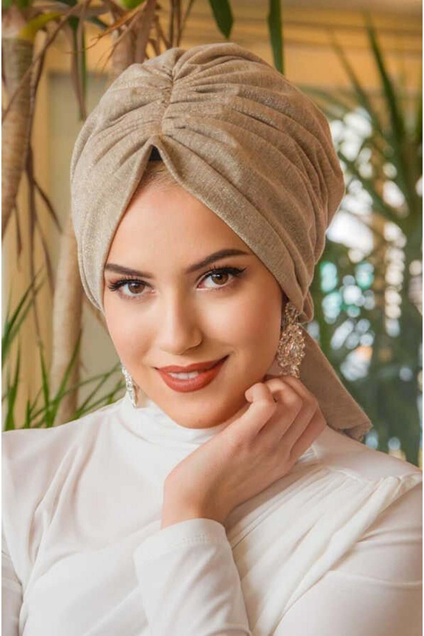 Aişe tesettür Vizon Melanj Işıltılı Tokalı Bone