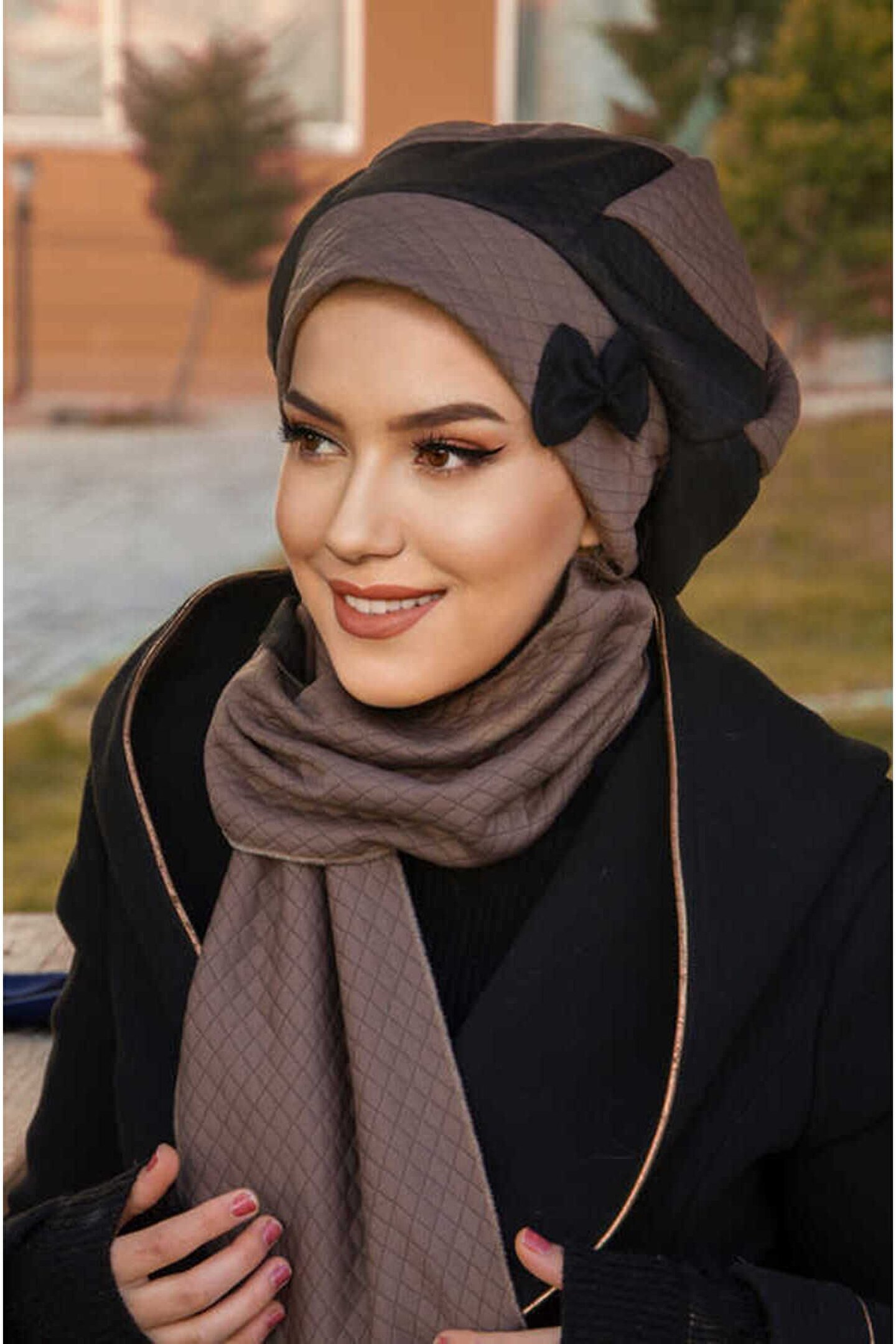 Zümrüt Kışlık Büzgülü Tesettür Şapka Ve Etol Takım