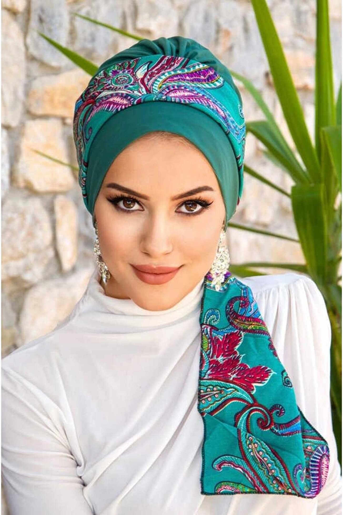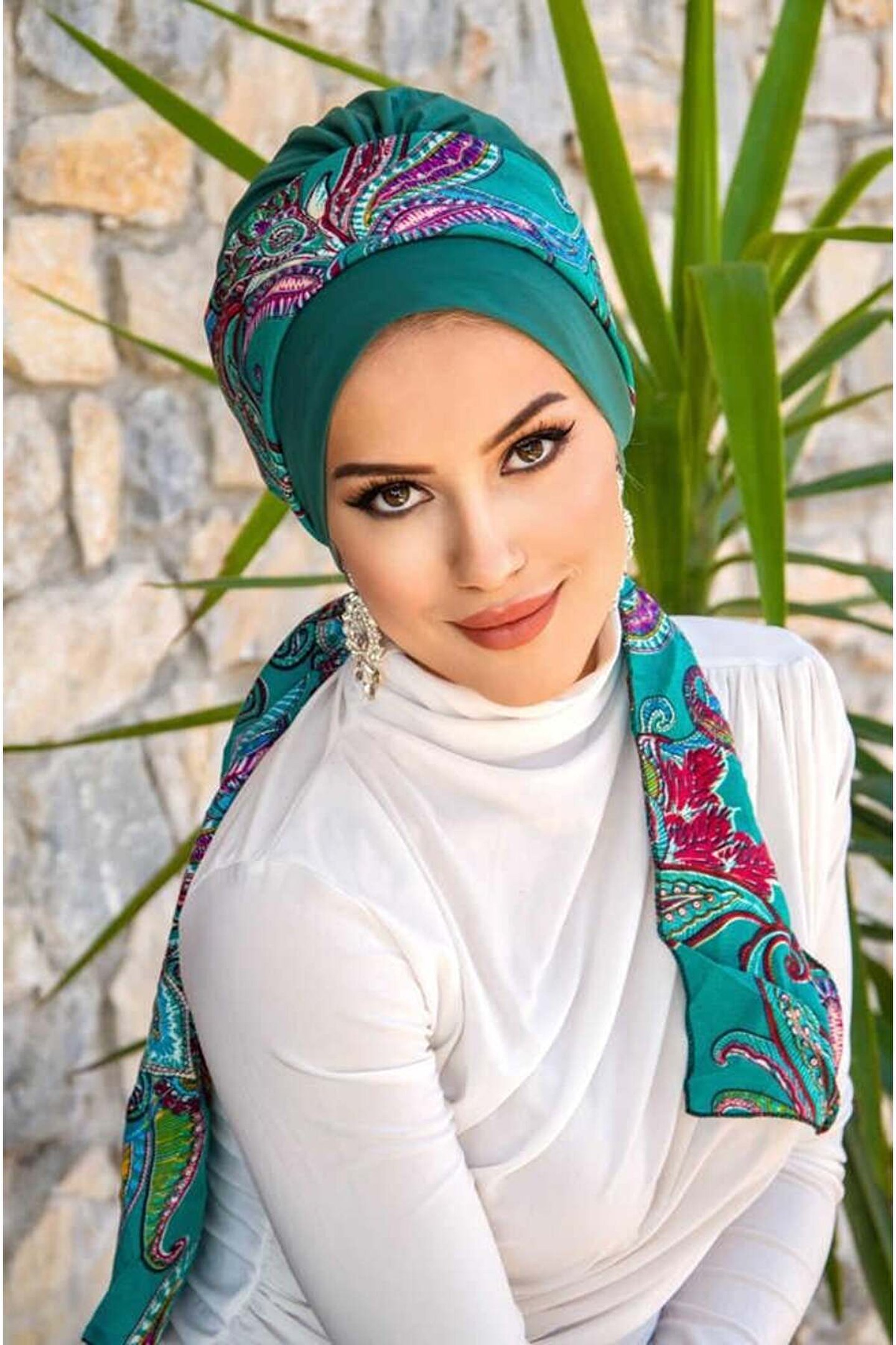 Aişe tesettür Zümrüt Etnik Desen Fularlı Bone