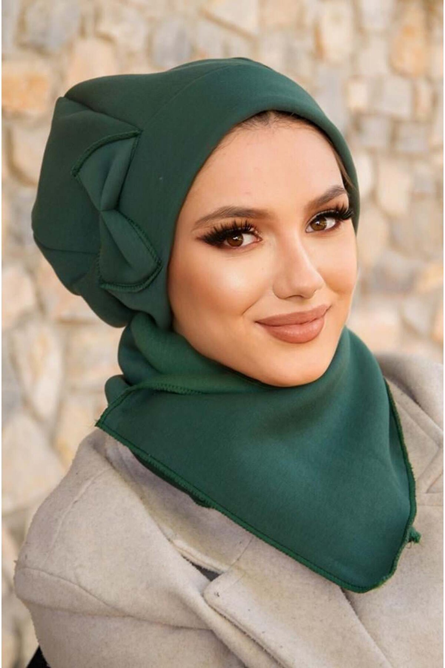 Aişe tesettür Zümrüt Fiyonklu Tesettür Bere Ve Etol Takım