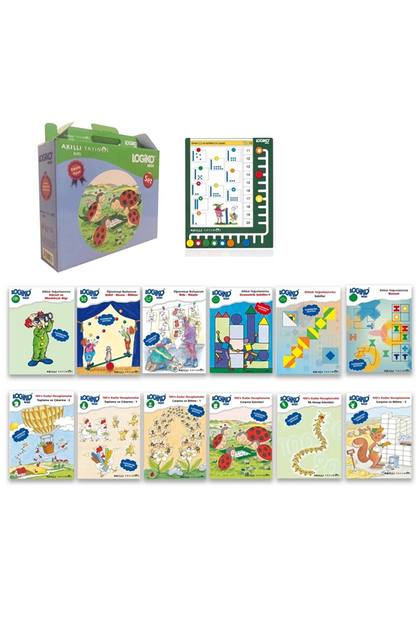Akıllı düğmeler 6-8 yaş görsel dikkat seti 6-8 yaş arasındaki çocukların kreşte, okulda, evde oynarken doğruluğunu kendilerinin kontrol edebildikleri, oynarken öğretmeyi amaçlayan bir öğretim aracıdır.; Çocuğun yaratıcı yönünü ön plana çıkarır, el ile kolay tutulabildiği için teknolojiden uzak kalmasına fayda sağlar.; Ayrıca doğruluğunun kendisi tarafından kontrol edebildiği için özgüveni artırır.; Akılı düğmeler 6-8 yaş setinin çerçevesindeki hareket edebilen düğmeler, el göz koordinasyonunu kuvvetlendirirken, hafıza egzersizlerini oyun yoluyla aşılar.; Set içerisindeki 96 adet fasikül tek tek çerçeveye üst kısımdan yerleştirilir.; Hareket edebilen düğmeler ile istenilen yönerge uygulanır.; Egzersiz tamamlandıktan sonra üst kısımdan yerleştirilen fasikül çıkarılır ve ters çevrilerek tekrar yerleştirir.; Hangi düğmenin doğru, hangisinin yanlış olduğu bu sayede anlaşılabilir.; Içerikleri uzman pedagoglar tarafından hazırlanmıştır.; Içerisindeki hiçbir egzersiz birbirine benzer yada bağlantılı değil.; Hepsi kendine özgüdür.; Akılda tutulması oldukça güç olan egzersizler sayesinde setin uzun süre kullanılabilir özelliği mevcuttur.; Her birisi 16 adet fasikülden oluşan kitapçıkların başlıkları şu şekildedir; bak ve düşün; şekil- Desen- Miktar; geometrik şekiller; konum; şekiller; görsel ve mantıksal algı; logiko akıllı düğmeler’in kullanıldığı bazı ülkeler; almanya, avusturya, isviçre, kolombiya, estonya, finlandiya, fransa, isveç, hong kong, hindistan, endonezya, malezya, singapur, hollanda, norveç, slovakya, ispanya, rusya, tayvan, amerika, kanada, porto riko, macaristan, portekiz, belçika ve türkiye.