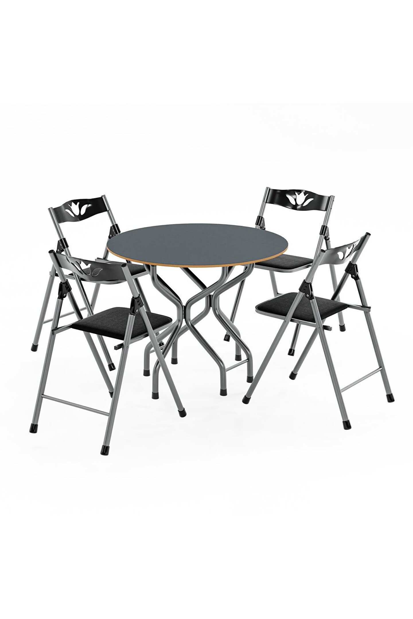 Birinci Kalite %100 Türk Malı; Highglos MDF; Malzeme; 1 Adet 90x90 Masa; 4 Adet Sandalye; Masa Yan Kanatları Katlanır Özelliktedir.; Dar Alanlarda Masanın Bir Kanadı Katlayarakda Kullanabilirsiniz.; Isterseniz 2 kanadınıda katlayabilirsiniz.; Ayrıca tüm sandalyelerde katlanabilir özelliğe sahip olup kullandıktan sonra katlayarak masanın ortasındaki boşluğa yerleştirebilirsiniz.; Sandalyeler, Mutfak Balkon Salon Gibi iç Mekanlarda Kullanılmak İçin Tasarlanmış Olup Şık Görünümü Sayesinde Bulunduğu Ortama Ayrı Bir Güzellik Katacaktır.; Sandalyelerin Sırt ve Mafsalları Plastik Ozellikte Olup Estetiktir.; Sandalyelerin Oturum yerleri Suni deriden imal edilmiştir Yenilenmiş Gövde Demir Aksamı En Az 1 ml. Kalınlıktadır.; Gövde Gri renkli Fırın Boya ile Boyanmıştır.; Ürünün Açık Ölçüleri: 90x90 cm genişlik, 70 cm yükseklik.; Ürünün Kapalı Ölçüleri:39 cm Genişlik, 90 cm Uzunluk, 70 cm Yükseklik.; Ürün Demonte Olarak Gönderim Yapılacaktır.;