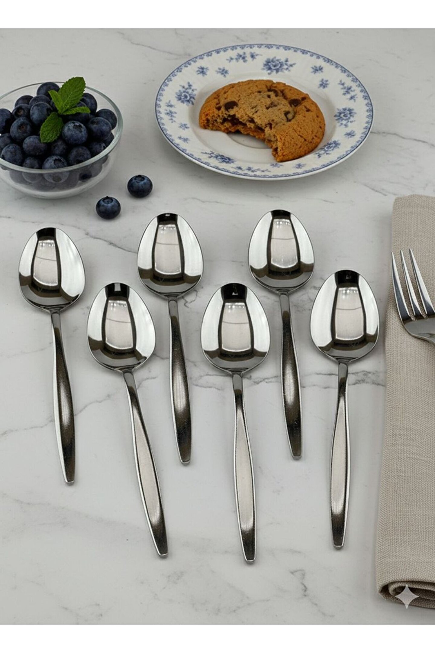 - Gümüş rengiyle modern ve şık bir görünüm sunan bu kaşık seti, sofralarınıza zarif bir dokunuş katar.