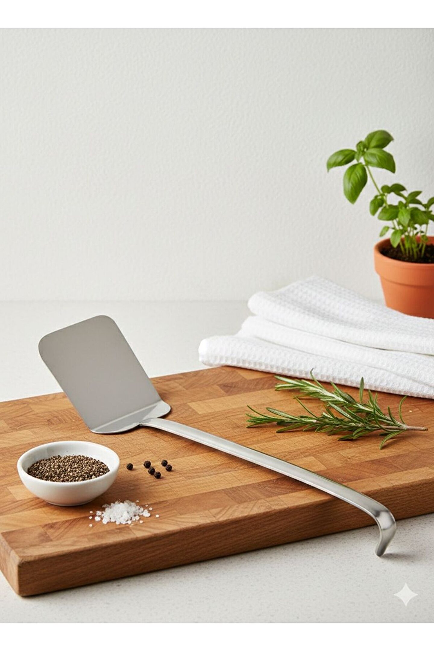 Mutfakta Şıklık ve Fonksiyonellik Bir Arada! Sunumlarınıza modern bir dokunuş katmak için tasarlanan bu paslanmaz çelik spatula, hem profesyonel mutfaklar hem de şık sofralar için idealdir.; Keskin hatları ve parlak yüzeyi ile sadece bir mutfak gereci değil, aynı zamanda bir tasarım objesidir.; * Yüksek Kalite Malzeme: Kararmaya ve paslanmaya dayanıklı, yüksek kaliteli paslanmaz çelikten üretilmiştir.; * Ergonomik Tasarım: Uzun sap yapısı sayesinde elinizi ısıdan uzak tutar ve servis sırasında konforlu bir tutuş sağlar.; * Çok Amaçlı Kullanım: Pasta, kek, börek ve diğer tüm fırın lezzetlerinin servisinde mükemmel sonuç verir.; * Kolay Temizlik: Bulaşık makinesinde yıkanabilir, parlaklığını uzun süre korur.; 3. Öne Çıkan Özellikler (Bullet Points) * Malzeme: %100 Paslanmaz Çelik * Yüzey: Ayna parlaklığında finiş * Tasarım: Modern, minimalist ve yekpare (tek parça) gövde * Kanca Detayı: Sap ucundaki kıvrım sayesinde asılarak kolayca depolanabilir UZUNLUK : 48 CM EN : 8 CM