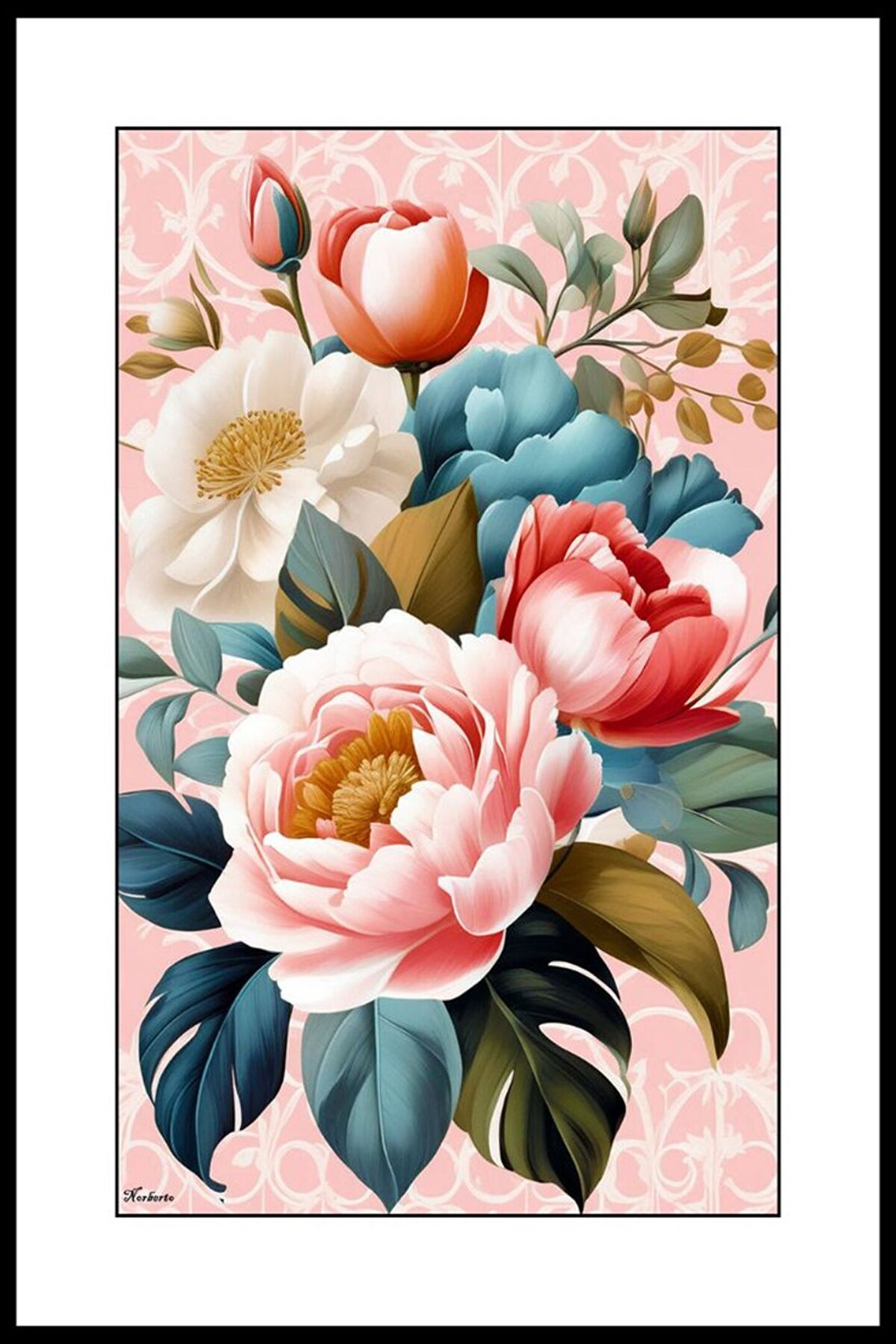 AKTÜEL POSTER Beyaz Pembe Güller Digital Art ( ÇERÇEVESİZ - ÇERÇEVE YOKTUR ) ( ULTRA HD ) FOLYO AFİŞ - POSTER