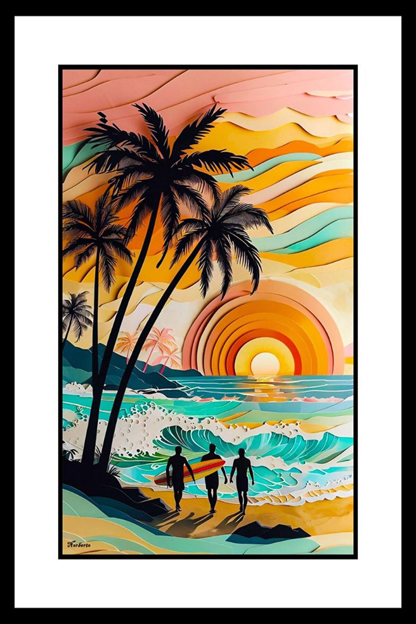AKTÜEL POSTER Dalgalarda Sörf Digital Art ( ÇERÇEVESİZ - ÇERÇEVE YOKTUR ) ( ULTRA HD ) FOLYO AFİŞ - POSTER