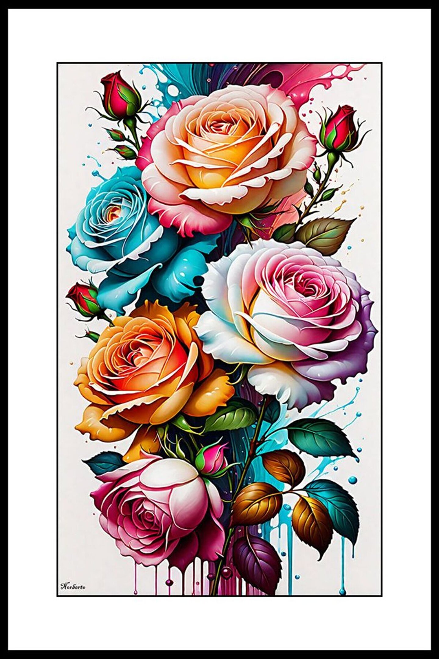 AKTÜEL POSTER Güller Tablosu Digital Art ( ÇERÇEVESİZ - ÇERÇEVE YOKTUR ) ( ULTRA HD ) FOLYO AFİŞ - POSTER