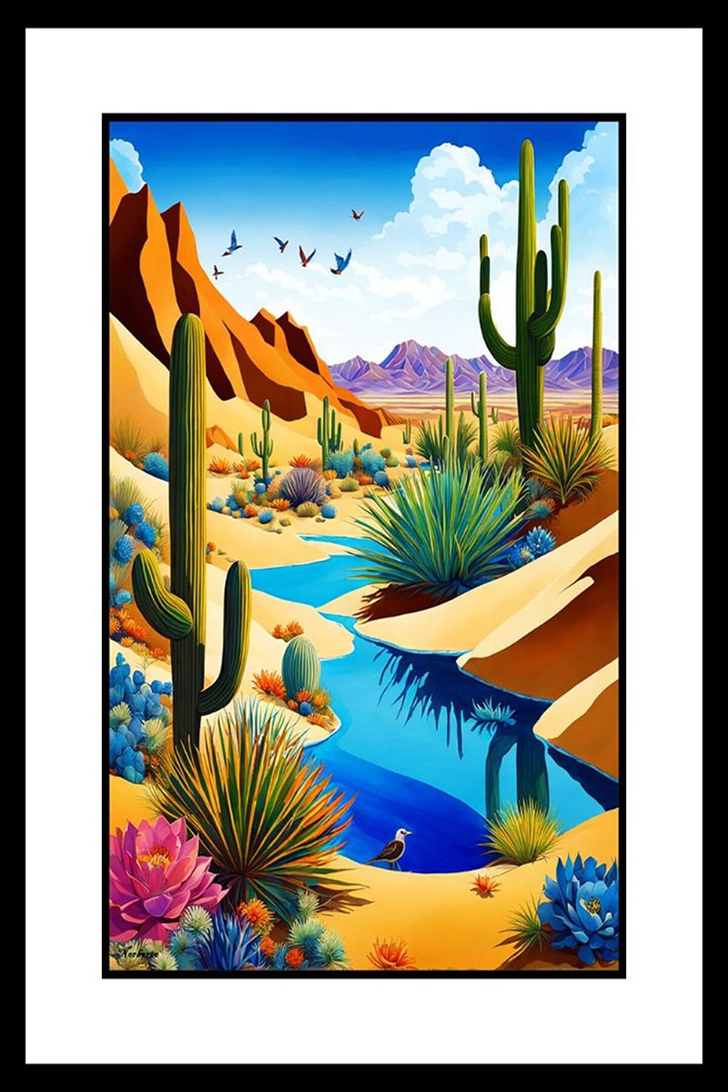 AKTÜEL POSTER Kaktüslü Nehir Digital Art ( ÇERÇEVESİZ - ÇERÇEVE YOKTUR ) ( ULTRA HD ) FOLYO AFİŞ - POSTER