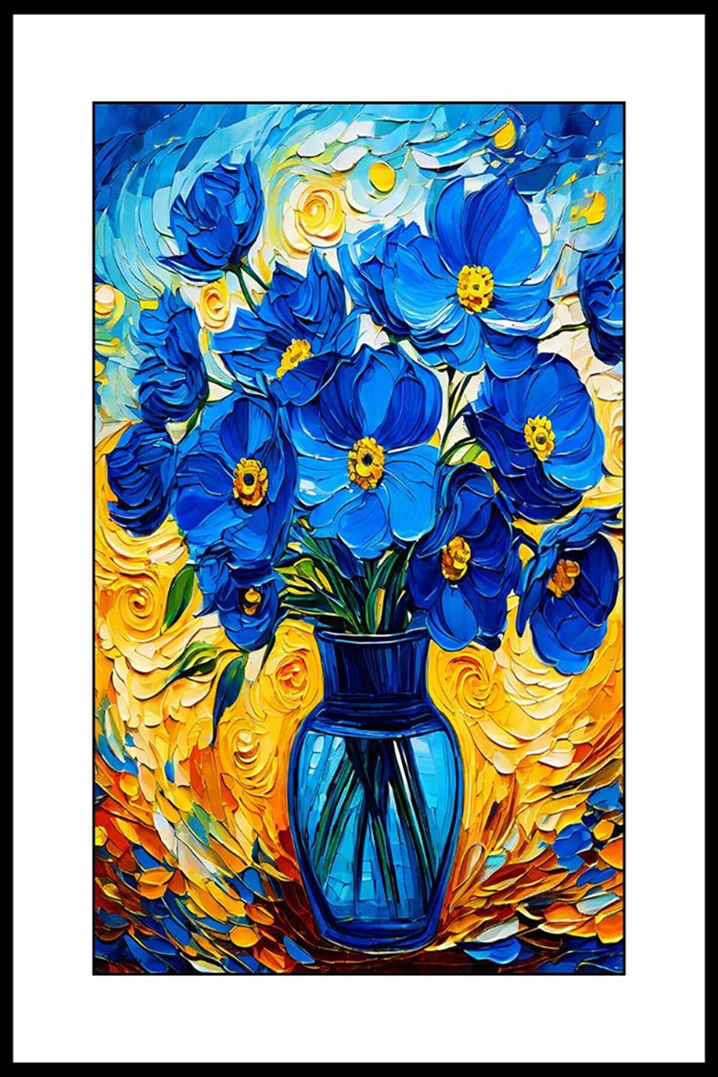 AKTÜEL POSTER Mavi Çiçekli Vazo Digital Art ( ÇERÇEVESİZ - ÇERÇEVE YOKTUR ) ( ULTRA HD ) FOLYO AFİŞ - POSTER