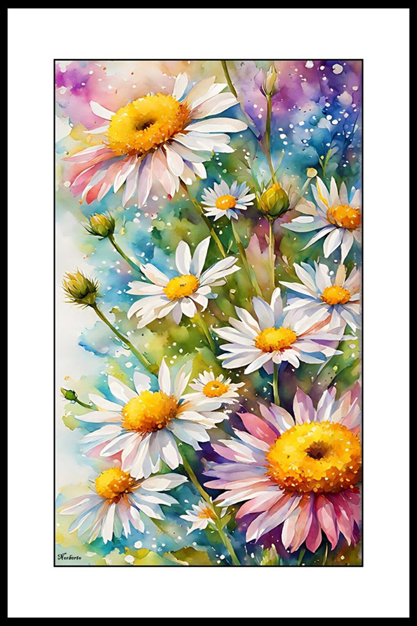 AKTÜEL POSTER Papatya Çiçekleri Digital Art ( ÇERÇEVESİZ - ÇERÇEVE YOKTUR ) ( ULTRA HD ) FOLYO AFİŞ - POSTER