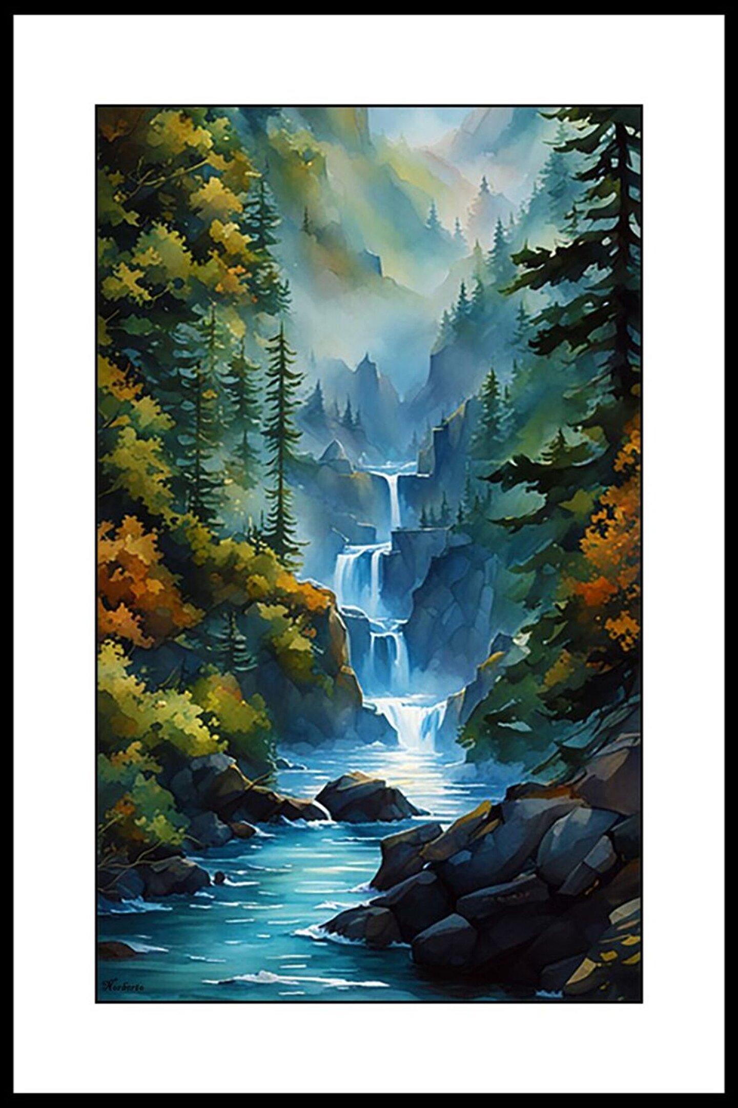AKTÜEL POSTER Taşlara Düşen Şelale Digital Art ( ÇERÇEVESİZ - ÇERÇEVE YOKTUR ) ( ULTRA HD ) FOLYO AFİŞ - POSTER