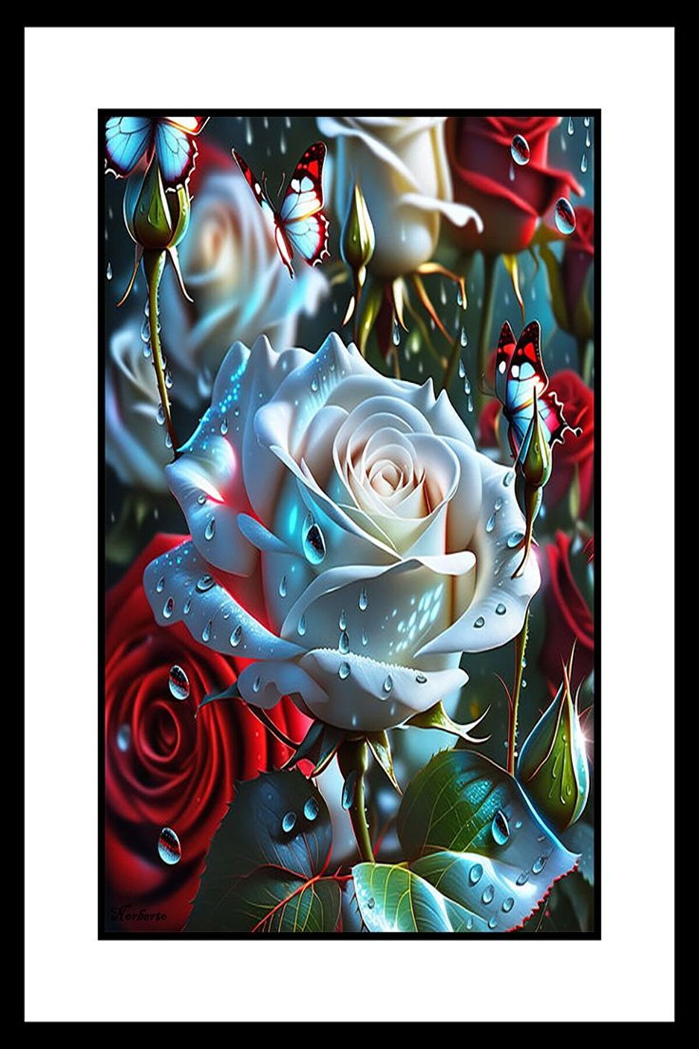 AKTÜEL POSTER Yağmur Gülleri Digital Art ( ÇERÇEVESİZ - ÇERÇEVE YOKTUR ) ( ULTRA HD ) FOLYO AFİŞ - POSTER