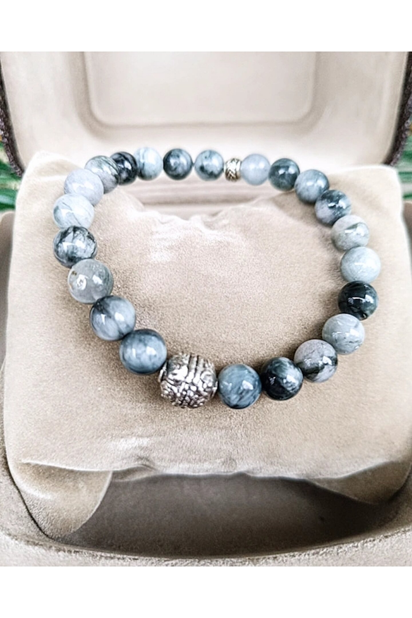 Doğal taş kullanımı sayesinde her bileklik benzersiz ve otantik bir görünüm sunar; Şahin gözü detayı ile tasarlanmış bu bileklik, stilinizi tamamlayacak zarif bir aksesuar seçeneği oluşturur; Doğal taş materyaliyle hem dayanıklılık hem de estetik bir dokunuş sağlar;