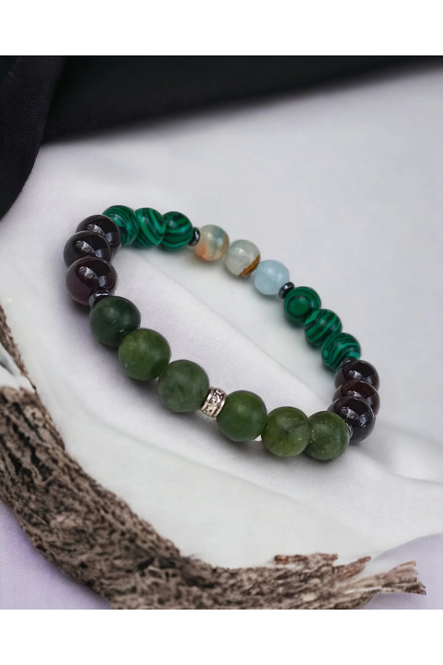 Doğal taş bileklik, şıklığı ve doğallığı bir arada sunar; her kıyafetle uyum sağlayacak zarif bir aksesuar seçeneği; El yapımı doğal taş kullanımı, her bilekliğe eşsiz bir karakter kazandırırken, cildinizle doğal bir uyum içinde olmasını sağlar; Huzursuz bacak sendromu gibi rahatsızlıklar için faydalı olduğu bilinen doğal taşlar, bileklikte kullanılarak hem estetik hem de terapötik bir etki yaratır; Doğal taş bileklik, günlük kullanım için idealdir; hem rahatlığı hem de estetik görünümü ile dikkat çeker;