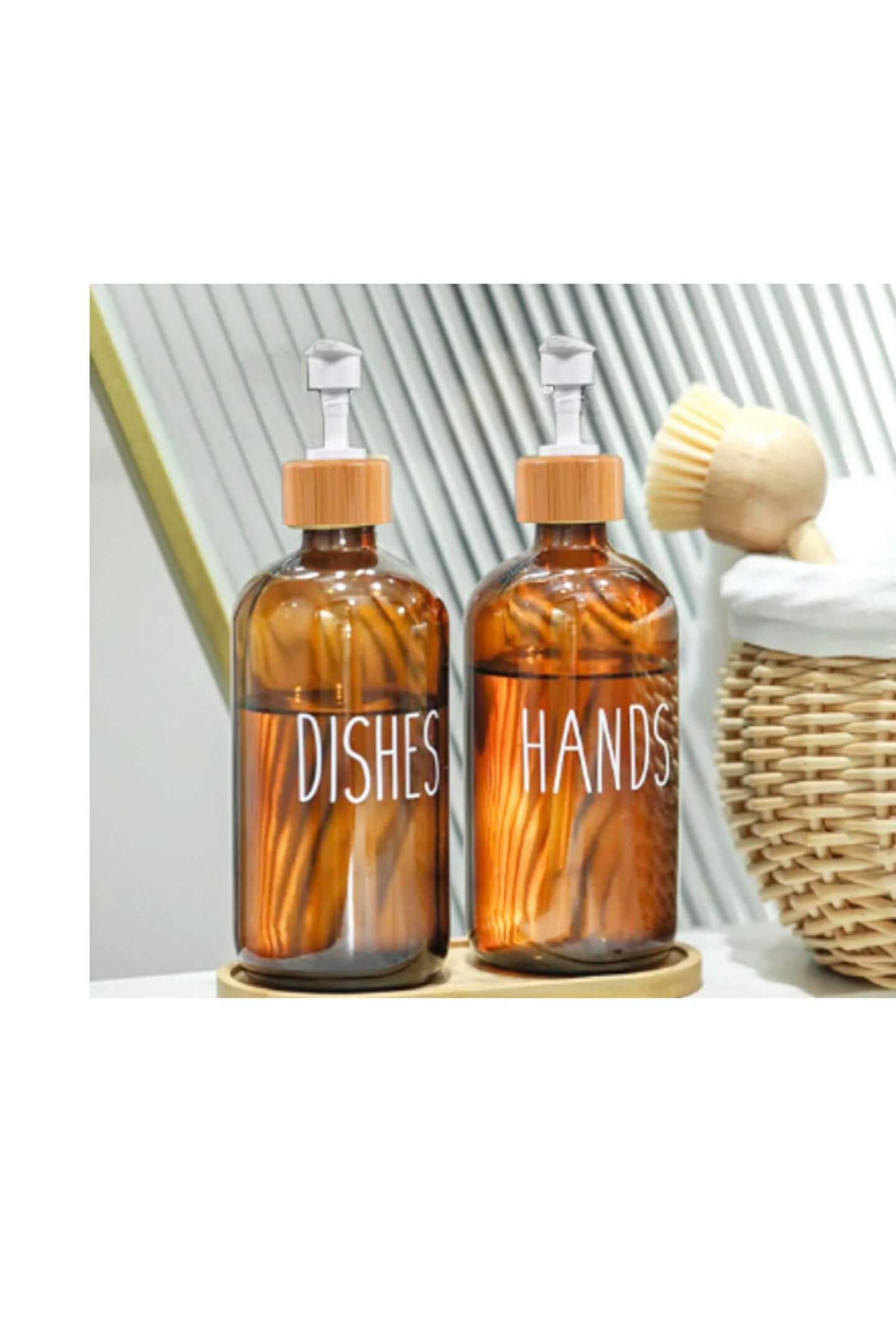 2’li Amber Bambu Standlı Hands&dishes Sıvı Sabunluk, Bulaşık Deterjanlık Seti, 500 Mlx 2 Adet