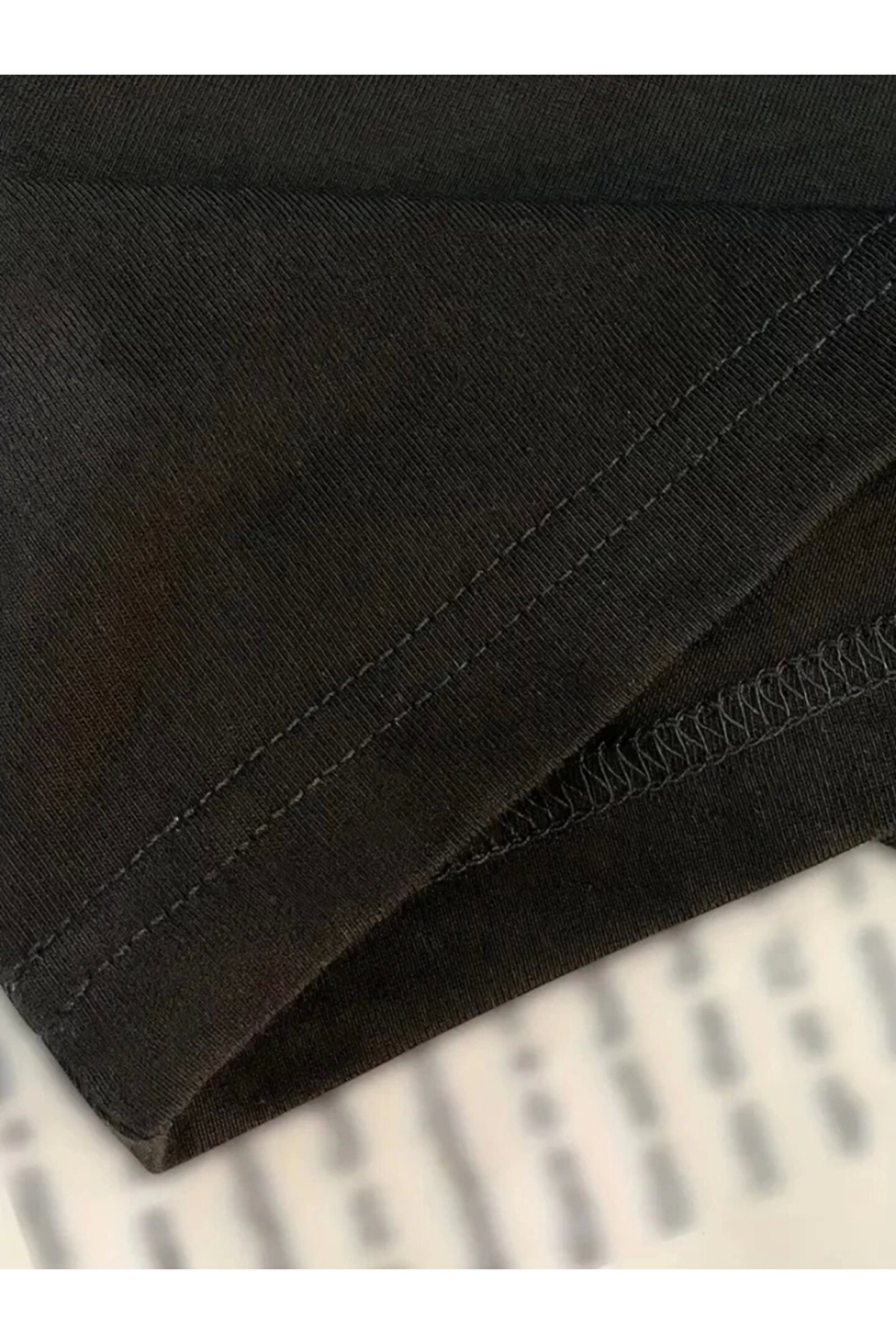 Baskılı Oversize Bisiklet Yaka T-shirt - Siyah