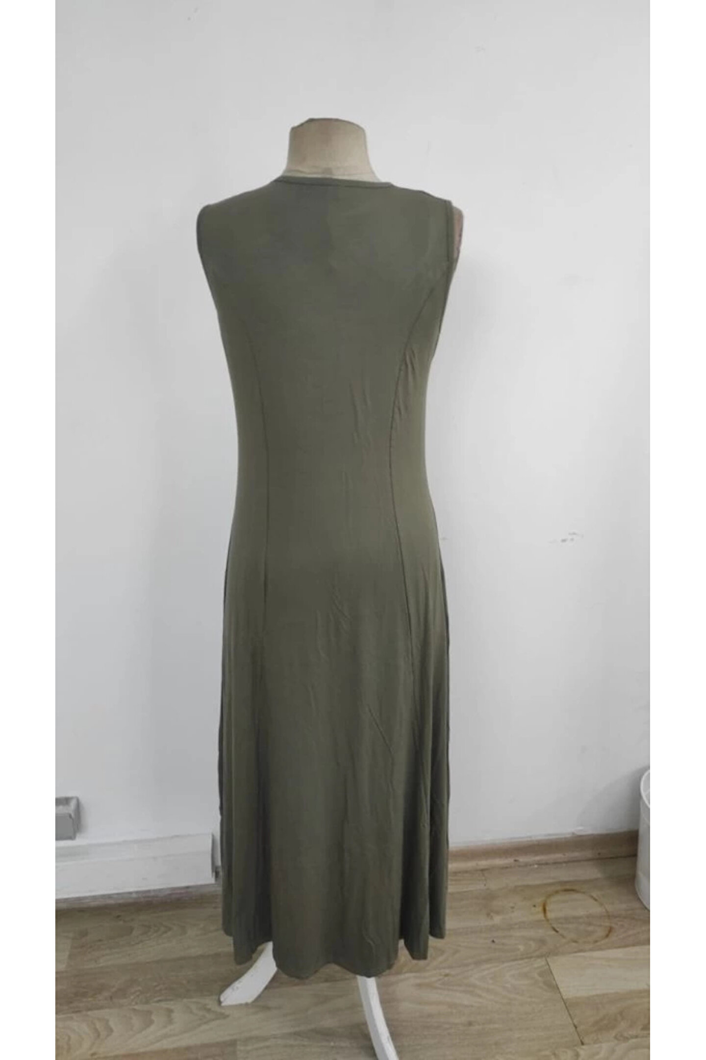 Kadın Sıfır Kollu Bisiklet Yaka Viskon Elbise