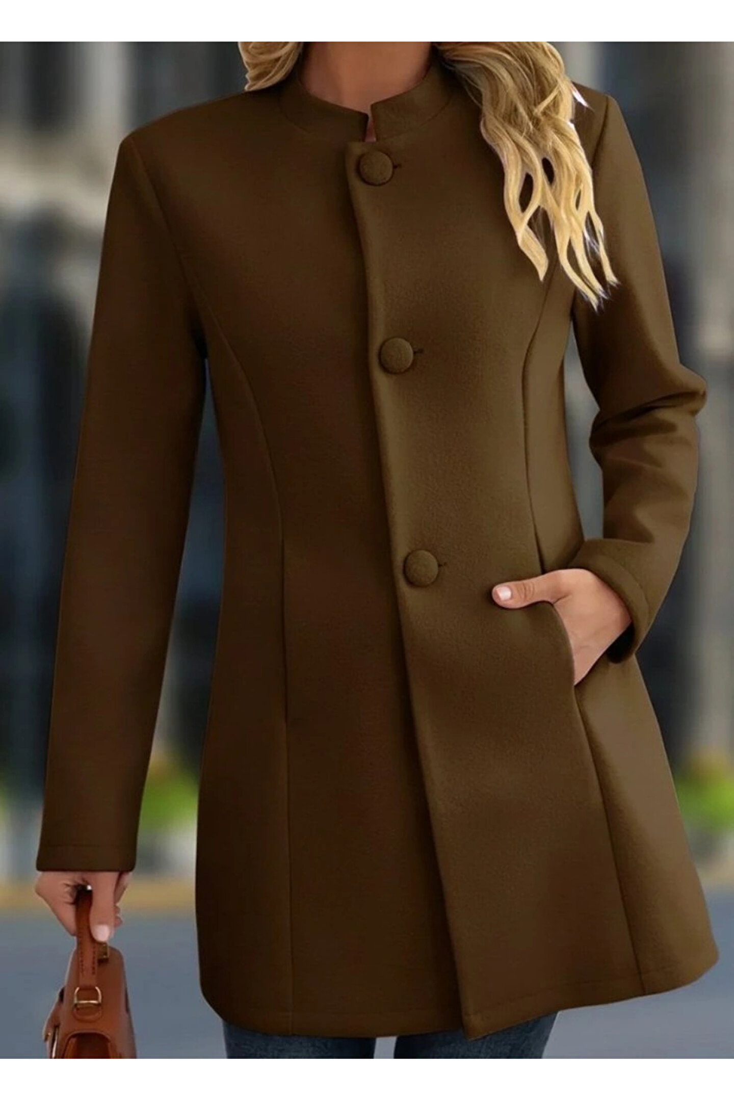 ALPACO Kadın Uzun Kollu Hakim Yakalı önden Düğmeli Cep Detaylı Kısa Taba Kaşe Kaban