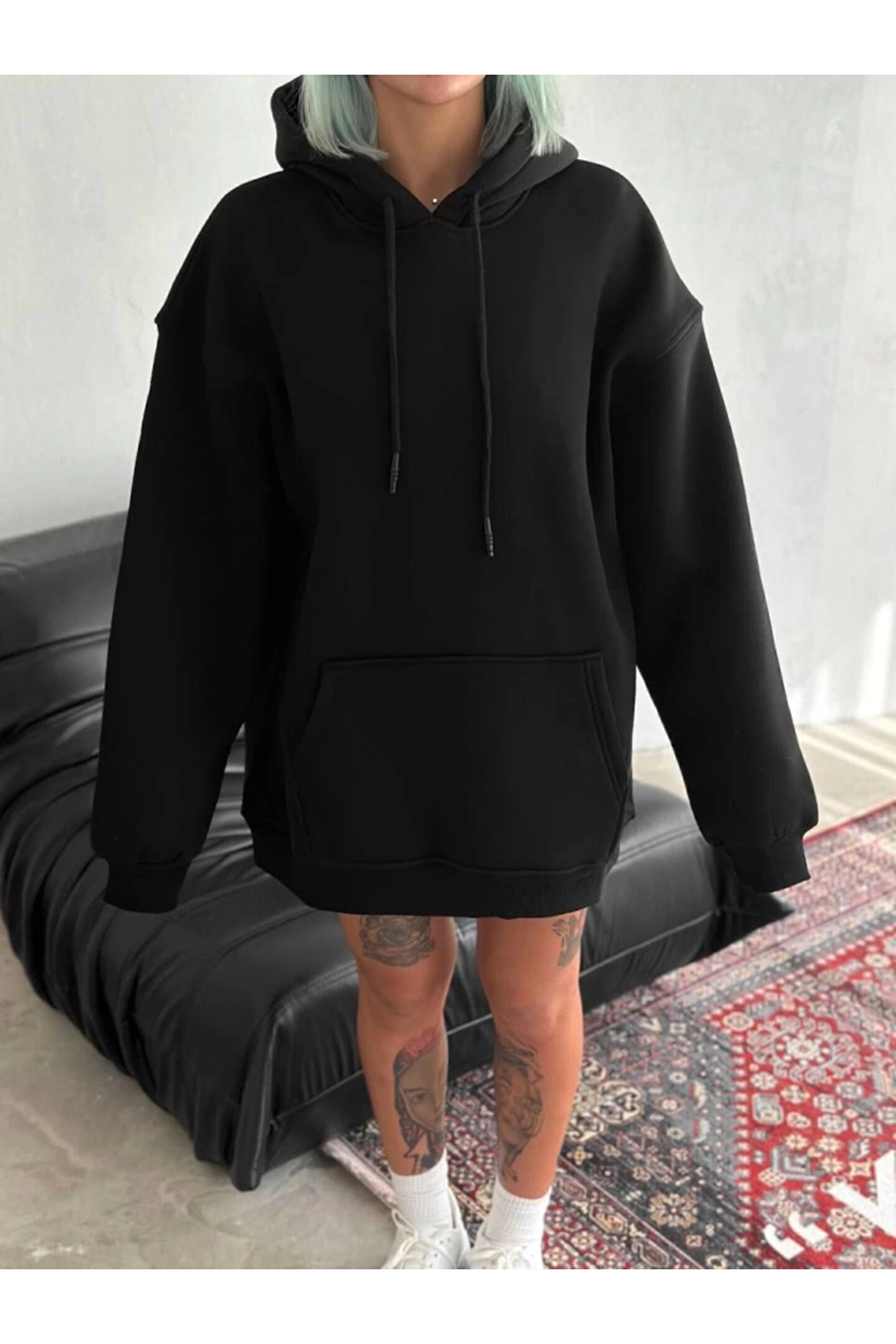 ALPACO Kapşonlu Üç İplik Penye Basic SweatShirt - Siyah