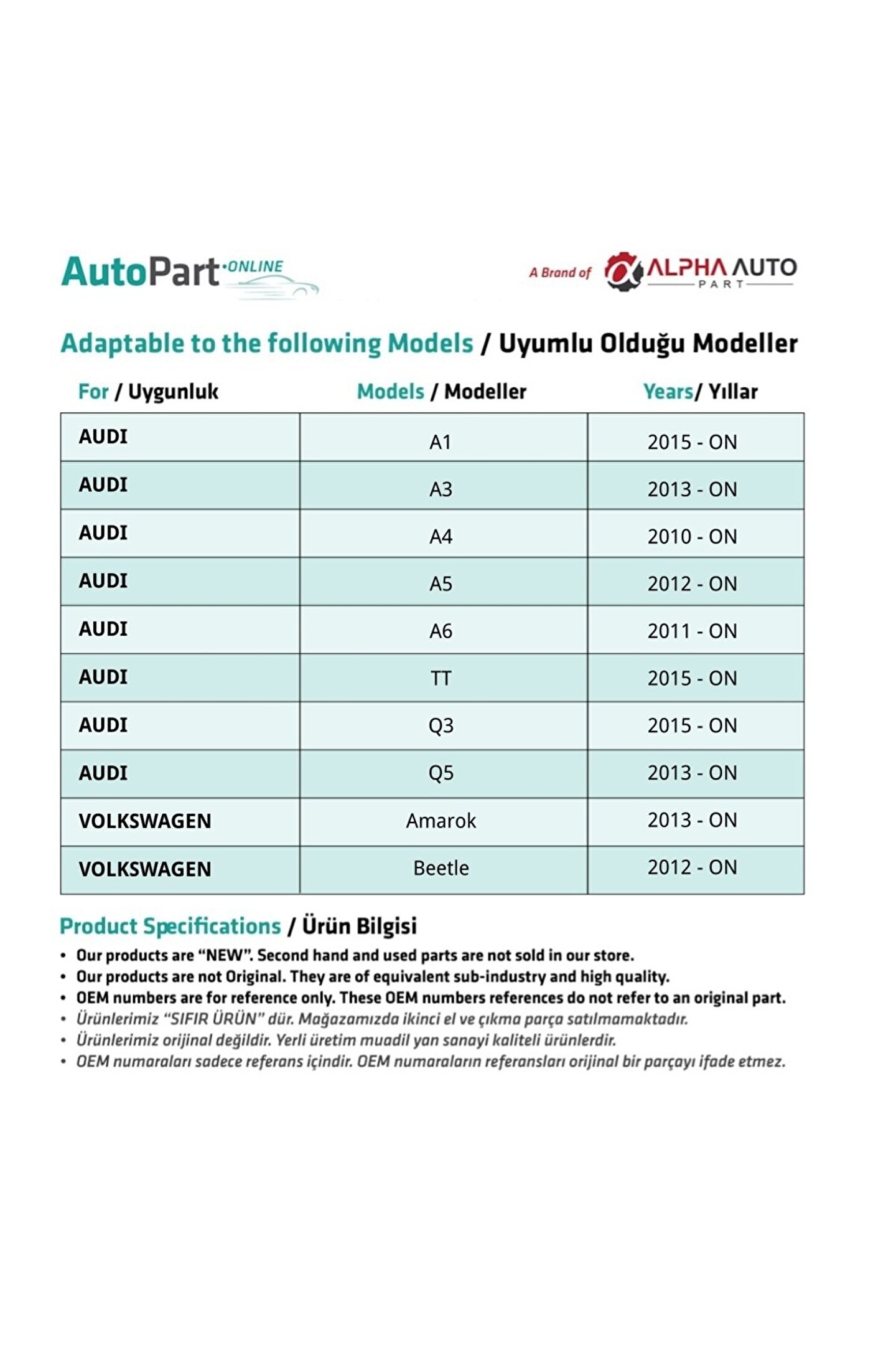 • Bu ürün Parçamerkezionline mağazası tarafından gönderilecektir