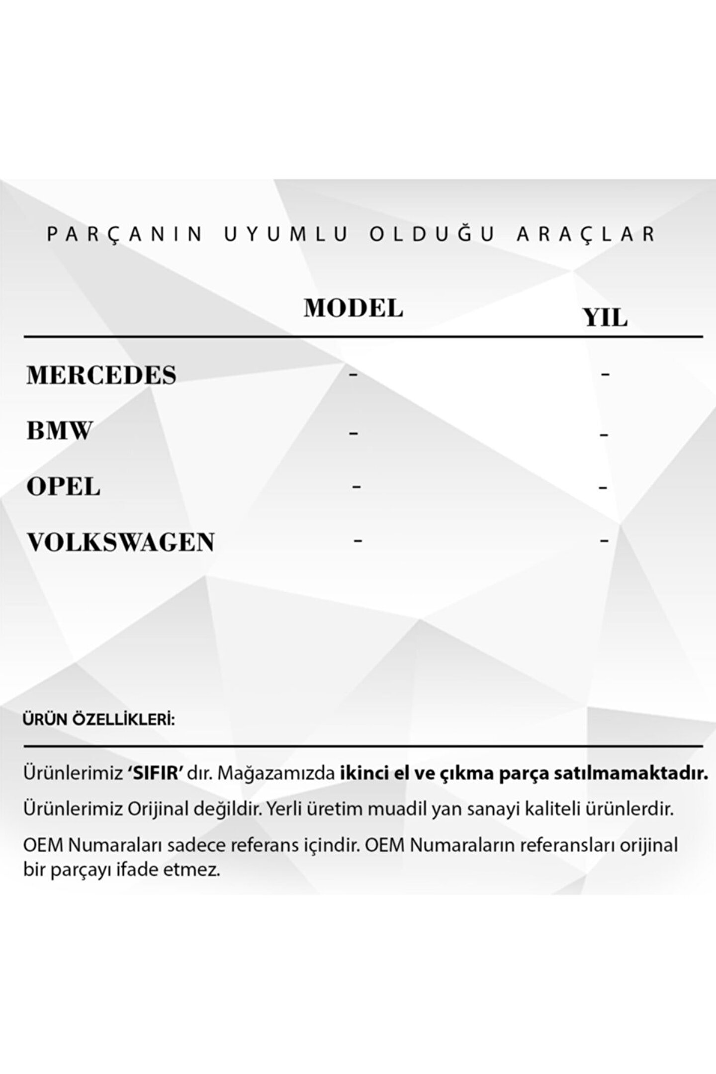 BMW - MERCEDES - OPEL - VW için Sunroof Motor Dişlisi.; Bu ürün, aracınızın sunroof mekanizmasının sorunsuz ve etkin bir şekilde çalışmasını sağlar.; Araba Sunroof Motor Dişlisi, dayanıklı yapı malzemeleri ile üretilmiştir ve uzun ömürlü bir kullanım sunar.; Olabilecek her türlü aşınma ve yıpranmaya karşı ekstra dayanıklıdır.; Hassas işçilik ve mükemmel uyumluluk sayesinde, mevcut sunroof motorunuzla mükemmel bir eşleşme sağlar.; Kolay kurulumu ile zamandan tasarruf sağlar ve hiçbir ek parçaya ihtiyaç duymadan doğrudan değiştirilebilir.; Bu ürün, sunroofunuzun etkin bir şekilde açılıp kapanmasını sağlar, böylece konforlu ve keyifli bir sürüş deneyimi elde edersiniz.; Ürün Kodu: SR2285