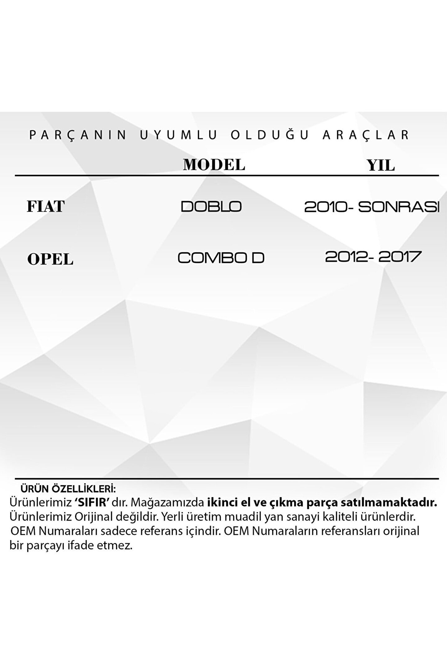 Fiat Doblo.; Combo D için Ayna Sinyali Beyaz- Sağ.; Bu ürün, aracınızın sağ tarafında yer alan ayna sinyali olarak tasarlanmıştır.; Araba Ayna Sinyali Beyaz- Sağ, sürüş deneyiminizi daha güvenli ve konforlu hale getirir.; Yüksek görünürlük sağlar, bu sayede diğer sürücülerin sizi daha kolay fark etmelerine yardımcı olur.; Sinyaller, hem gündüz hem de gece net bir şekilde görülebilir.; Bu ürün, aracınıza modern bir görünüm katarken aynı zamanda sürüş güvenliğinizi artırır.; Ayrıca, yüksek kaliteli malzemeler kullanılarak üretilmiştir ve uzun ömürlüdür.; Montajı kolaydır ve aracınıza mükemmel bir şekilde uyum sağlar.; Araba Ayna Sinyali Beyaz- Sağ, yol güvenliğinizi arttıran yüksek kaliteli bir üründür.