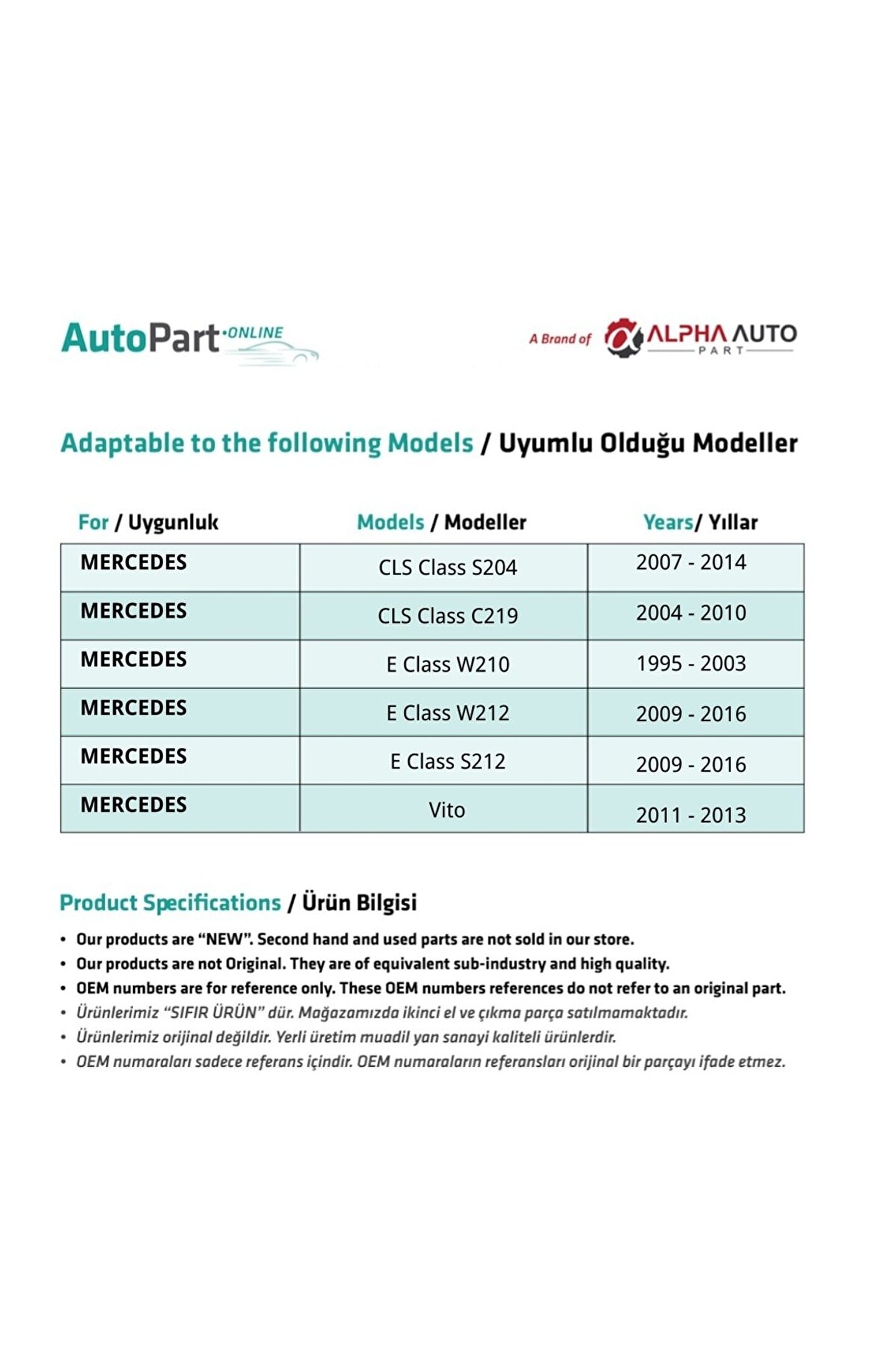 • Bu ürün Parçamerkezionline mağazası tarafından gönderilecektir