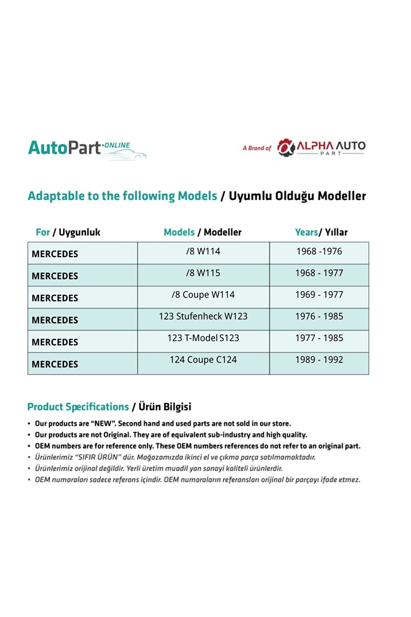ALPHA AUTO PART Mercedes Benz için Vites Burcu KÜÇÜK (10 Adet)