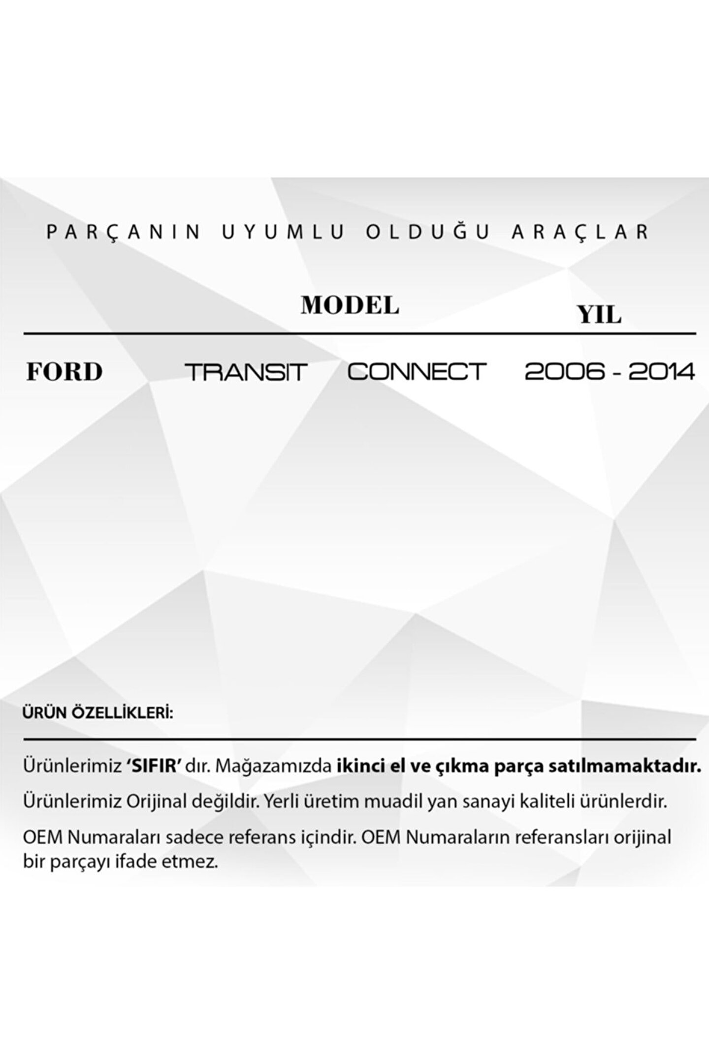 Ford Transit Connect için 3 Butonlu Anahtar Kumandası Kabı.; Araçlarınızın güvenliğini sağlayan Araba 3 Butonlu Anahtar Kumandası Kabı, dayanıklı yapısı ve pratik kullanımıyla dikkat çekiyor.; Ürün kodu KY2201 olan bu kumanda kabı, araba anahtarlarınızı çizilmelere ve hasarlara karşı koruyor.; Aynı zamanda 3 butonlu tasarımı, araç kumandanızın fonksiyonlarına kolay ve hızlı erişim sağlar.; Kolay taşınabilir yapısı ile cebinize veya çantanıza sığabilir.; Dayanıklı malzemesi sayesinde uzun ömürlü kullanım vaat eder.; Bu anahtar kumandası kabı, sadece araba anahtarınızı korumakla kalmaz, aynı zamanda şık ve profesyonel bir görünüm de katar.; Kullanımı kolay ve montajı basit olan bu ürün, araç sahipleri için ideal bir seçimdir.; Araba 3 Butonlu Anahtar Kumandası Kabı ile anahtarlarınız her zaman güvende ve kontrolünüz altında olacak.