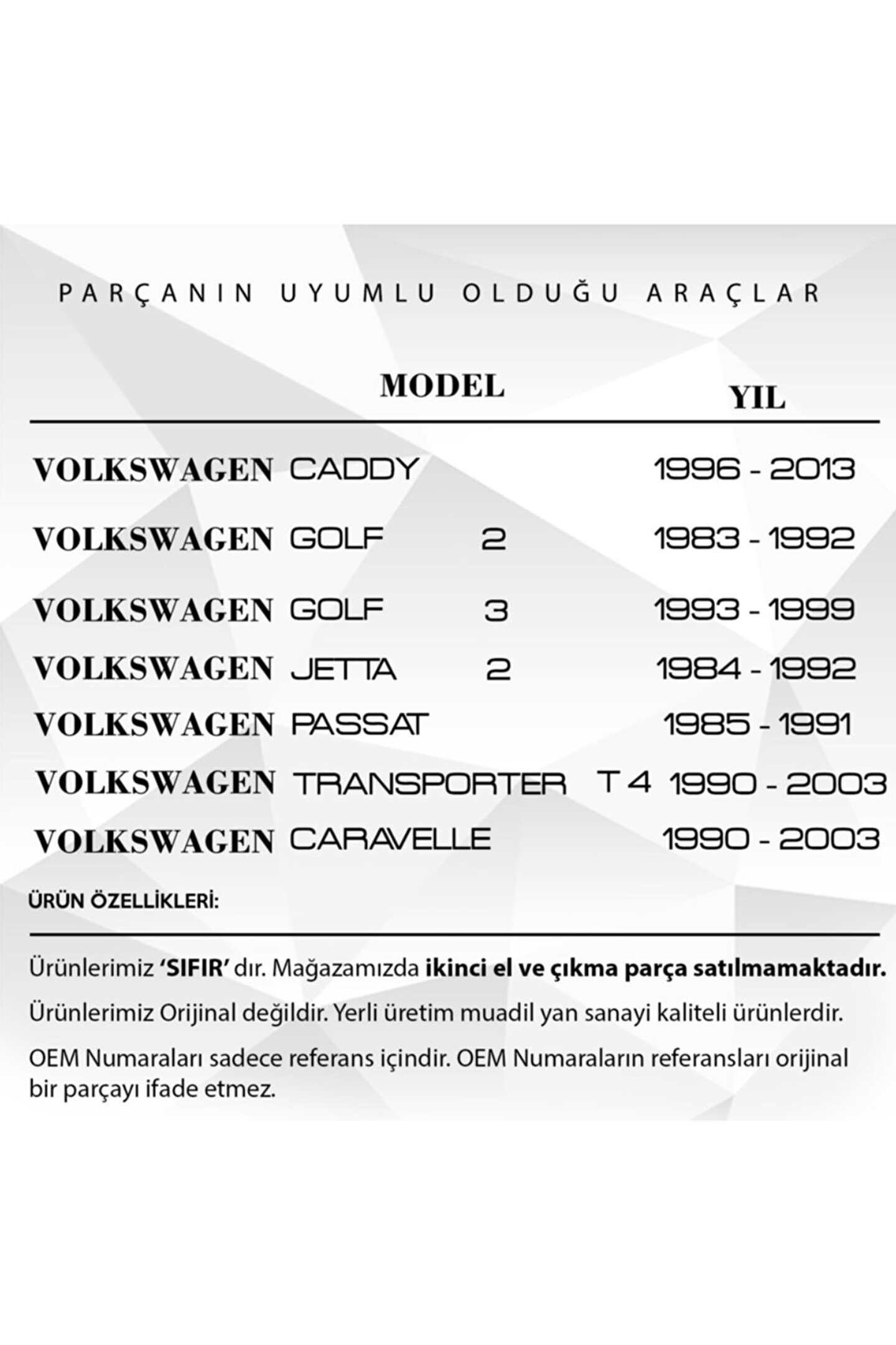 VW Caddy.; Jetta.; Golf.; Passat.; T4.Caravelle için Debriyaj-Fren Pedal Lastiği.; OT2247 kodlu Araba Debriyaj-Fren Pedal Lastiği, aracınızın kontrolünü artırmak ve sürüş güvenliğinizi sağlamak için tasarlanmıştır.; Bu pedal lastiği, dayanıklı yapısı ve yüksek performansı ile aracınızın kontrolünü sizin elinize verir.; Aracınızın debriyaj ve fren pedalına kolaylıkla takılabilecek şekilde tasarlanmıştır.; Yüksek dirençli malzemeden üretilmiştir ve uzun süreli kullanım için idealdir.; Bu Araba Debriyaj-Fren Pedal Lastiği, sürüş sırasında ayaklarınızın kaymasını önleyerek daha güvenli ve konforlu bir sürüş deneyimi sunar.; Ayrıca, bu pedal lastiği, aracınızın iç tasarımına modern ve şık bir dokunuş katar.; OT2247 Araba Debriyaj-Fren Pedal Lastiği, sürüş deneyiminizi geliştirmek ve aracınızın kontrolünü sağlamak için mükemmel bir seçimdir.