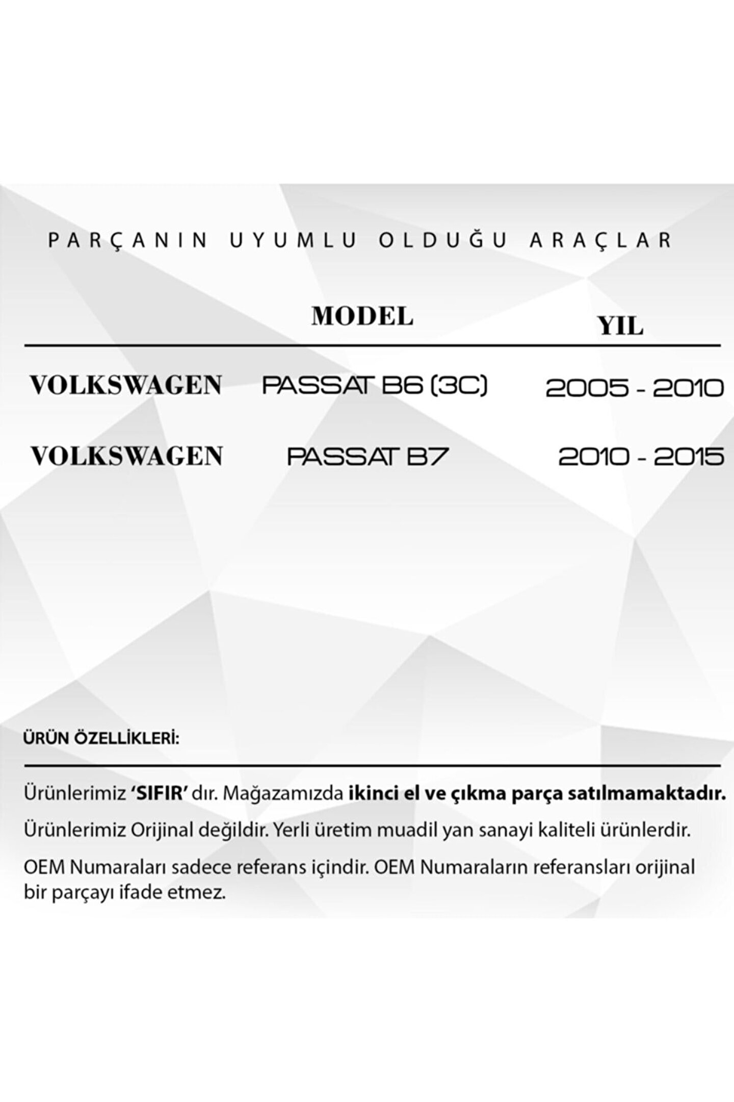VW Passat için Model Sağ Sol Kapılar Kilit Demiri Braket.; Araba Model Sağ Sol Kapılar Kilit Demiri Braketi, aracınızın kapılarını daha emniyetli ve güvenli hale getiren bir aksesuardır.; Bu yüksek kaliteli braket, sağlam ve dayanıklı bir yapıya sahiptir ve uzun süreli kullanım için idealdir.; Kapılarınızı sıkıca tutarak, istenmeyen girişleri ve hırsızlıkları önler.; Üstün kaliteli malzemeden üretilmiştir, bu nedenle paslanmaya veya aşınmaya karşı dirençlidir.; Kolay kurulum özelliği, bu ürünü her tür araç modeli için uygun hale getirir.; Araba Model Sağ Sol Kapılar Kilit Demiri Braketi, aracınızın kapılarını daha güvenli hale getirirken aynı zamanda kapı mekanizmasının ömrünü uzatarak tasarruf sağlar.; Bu ürün, herhangi bir araba sahibi veya araç bakım meraklısı için mükemmel bir seçim olacaktır.; Ürün Kodu: DLR2234