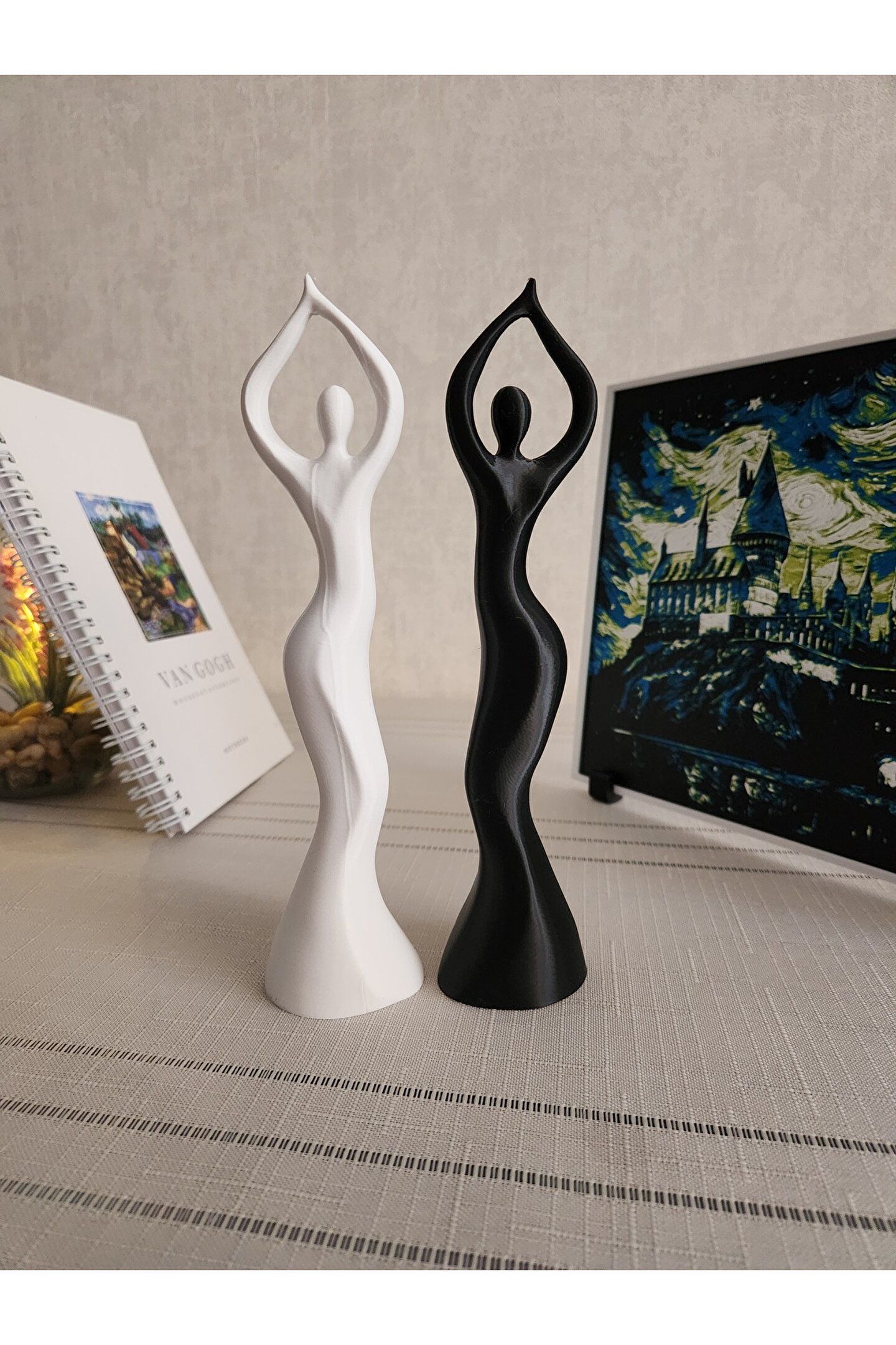 İskandinav tarzının zarif çizgilerini yansıtan dans eden kadın heykeli, evinizin dekorasyonuna modern bir dokunuş katıyor.; - İki parçadan oluşan set, hem tek başına hem de kombin molarak kullanılabilir böylece farklı alanlarda estetik uyumu sağlar.; - Yüksek kaliteli plastik materyalden üretilmiş olup, dayanıklılığı ve uzun ömürlü kullanımı garanti eder.; - 15 cm yüksekliğinde ve 5 cm genişliğindeki bu figür, mekanınıza şık bir görünüm kazandırırken aynı zamanda fonksiyonel bir aksesuar görevi görür.; - Beyaz rengiyle her türlü iç mekan tasarımına kolayca uyum sağlayarak, evinizdeki renk paletine zarif bir kontrast oluşturur - Renk tonları değişiklik gösterebilir - ÜRÜN SEPETE EKLENDİĞİNDE 1 ADET BEYAZ, 1 ADET SİYAH OLMAK ÜZERE TOPLAM 2 ADET GÖNDERİLİR.