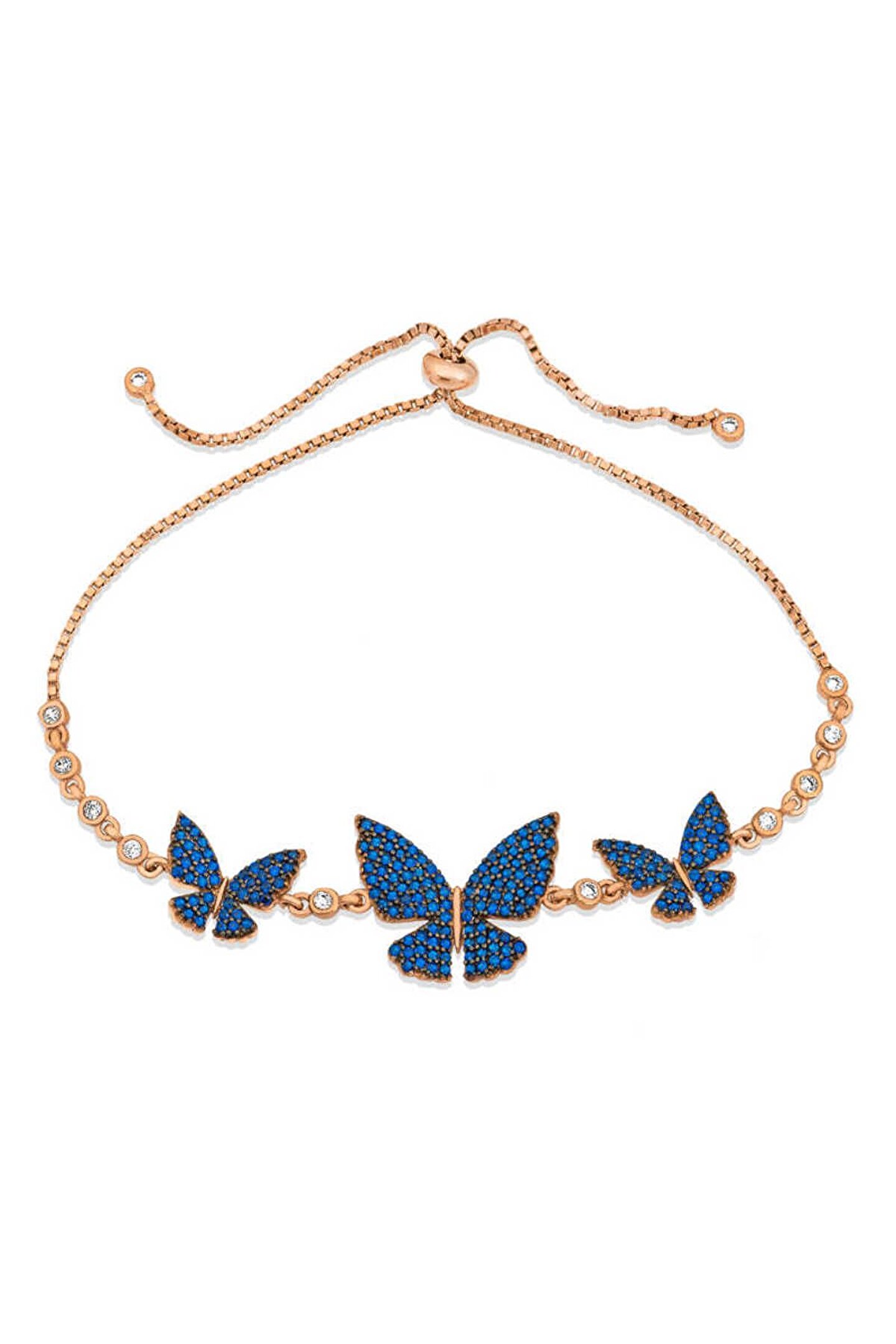 Samur Parti Parti Aksesuar & Kostüm 925 Ayar Gümüş Rose Lacivert Kelebek Asansör Bileklik