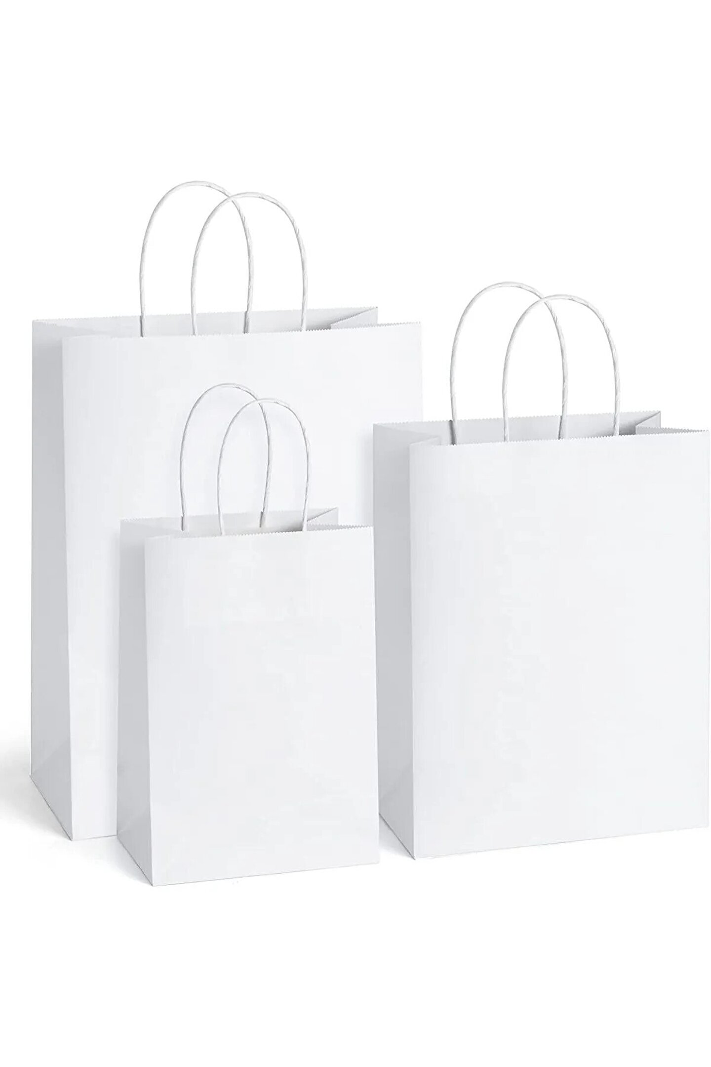 Ürün ölçüsü : En: 31 cm x boy: 41 cm körük: 12 cm ( 10 adet ) Kağıt poşet çanta, Beyaz Kraft kağıt çanta.