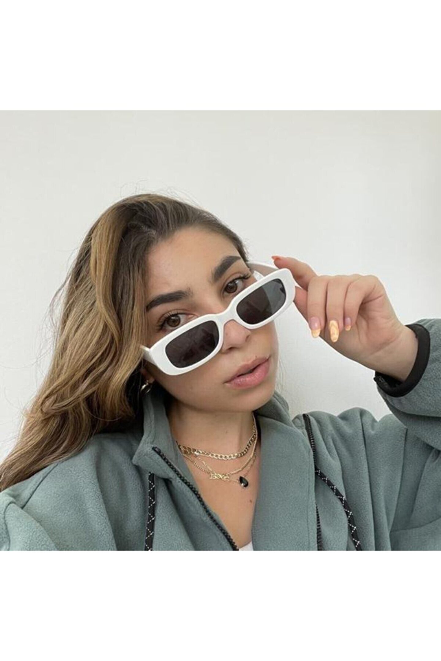 Kadın Dikdörtgen Beyaz Güneş Gözlüğü