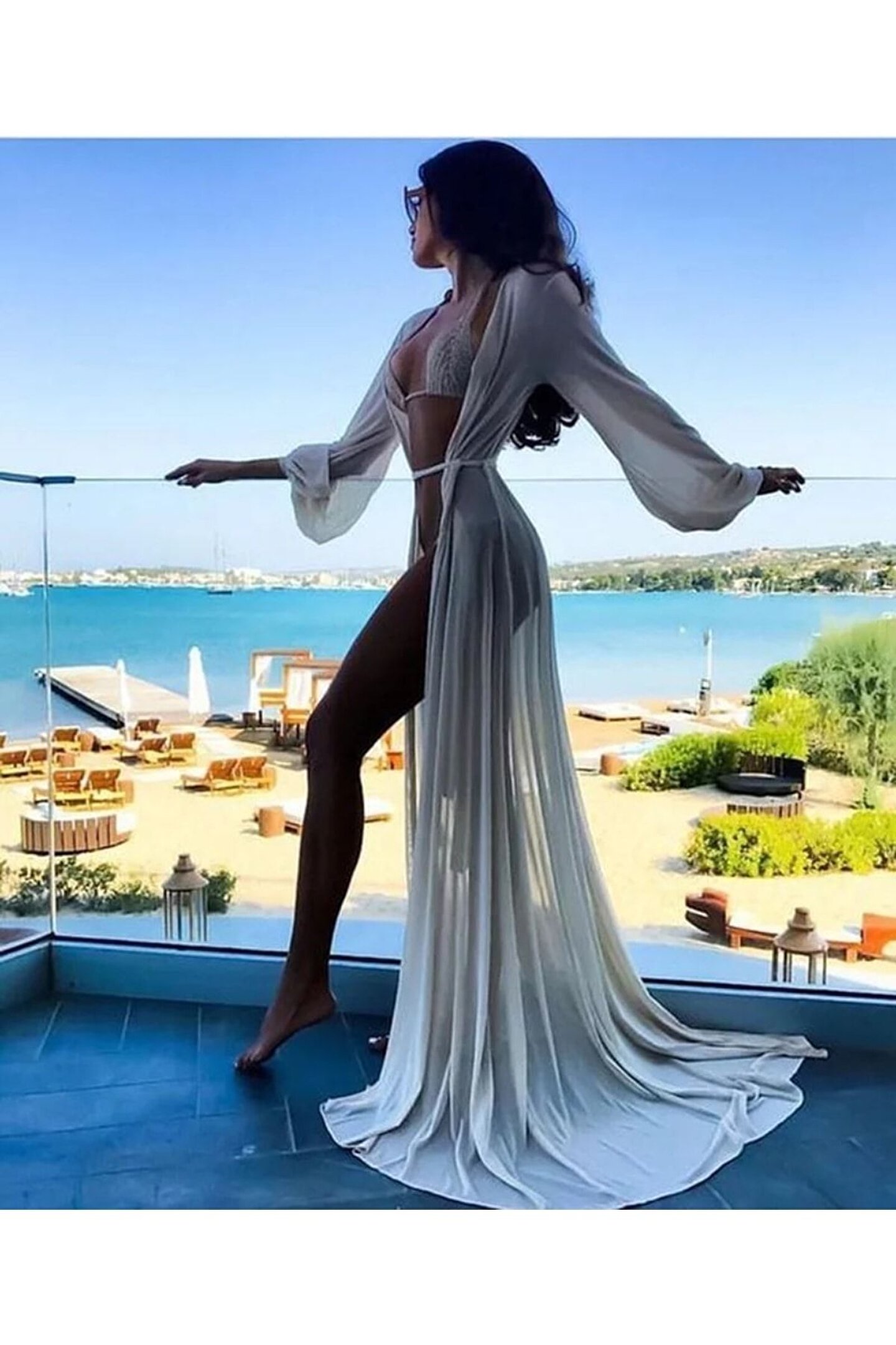 EQURİ Kadın Yüksek Bel Yandan Büzgülü Uzun Tül Detaylı Pareo