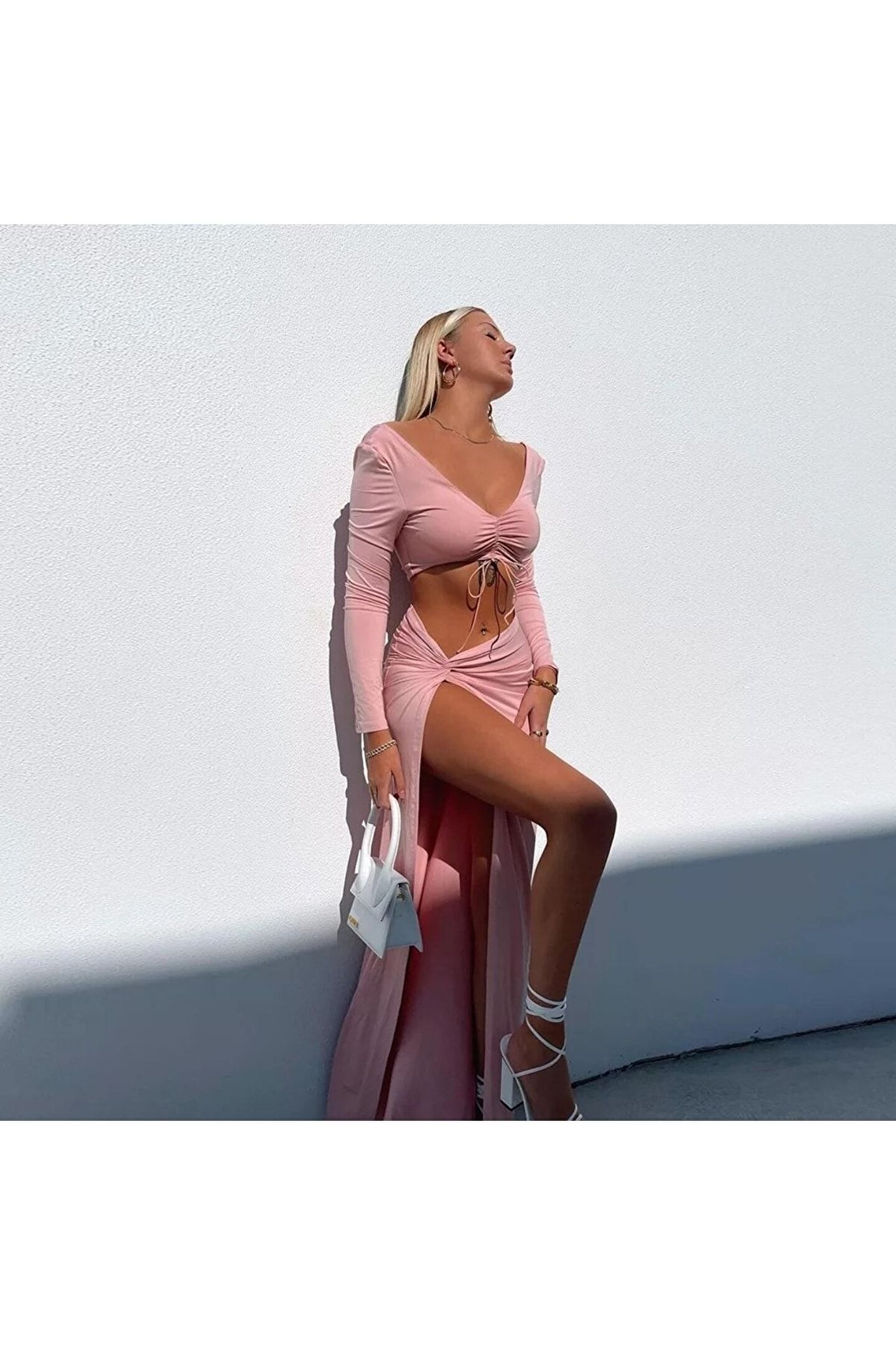 EQURİ Kadın Yüksek Bel Yandan Büzgülü Uzun Tül Detaylı Pareo