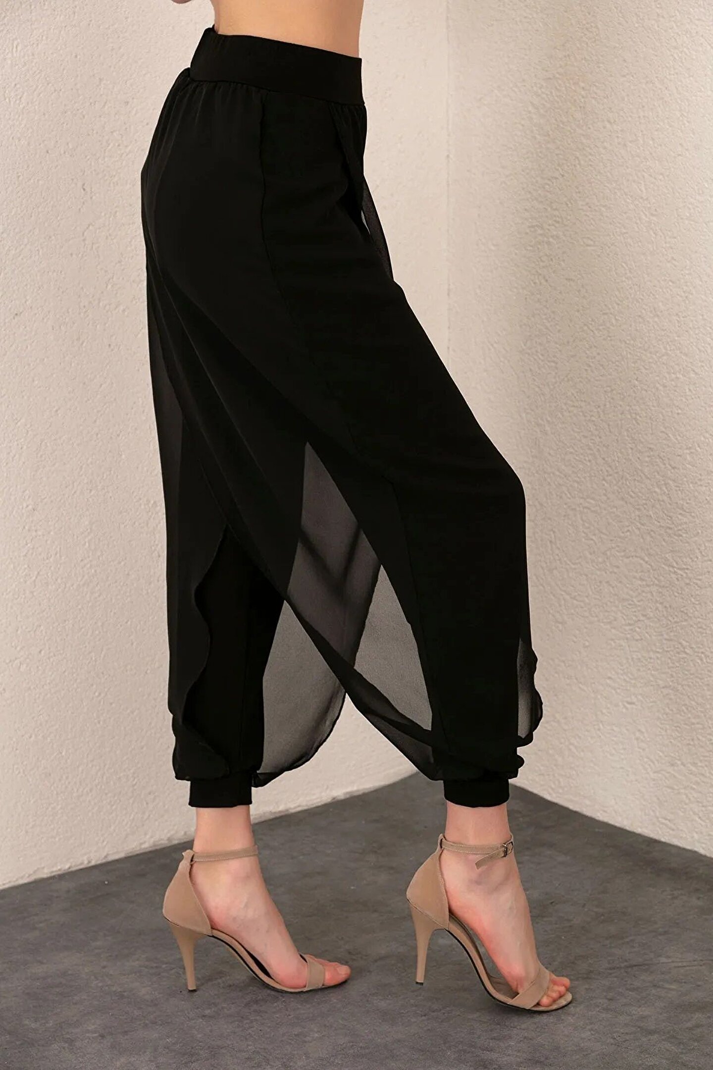 TÜL DETAYLI KIŞLIK MEVSİMLIK KADIN SİYAH PANTOLON