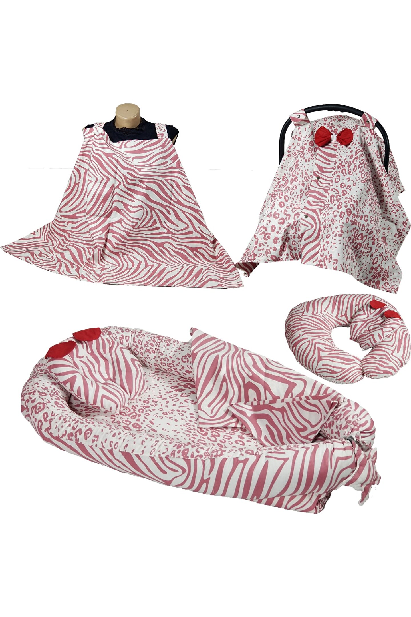 10'lu yeni doğan setimiz %100 pamuklu kumaştan üretilmiştir, Kenarları ezilmez ve toplanmaz silikonlu 1. sınıf boncuk elyafla doldurulmuştur. Ortopedik kulaklı yastık düz kafa yastığı, Uç kısmında bulunan yıldızlı ipler ile ürün boyu istediğiniz genişlikte ayarlanabilir. Bir buçuk yaşına kadar kullanılabilir. Dıştan dışa 100x65 cm dir. İç ölçüleri 75x35 cm dir. Bebeklerinizi, gittiğiniz her yerde rahatlıkla kendi temiz ortamında gibi uyutabileceksiniz. Pike battaniye 80 x 80 cm % 100 pamuklu kumaştan üretilmiştir terleme ve koku yapmaz. Paket içerisin de; düz kafa yastığı ve pike bulunmaktadır. Paket içerisin de; Babynest, Düz kafa yastığı, pike Puset örtüsü, puset çarşafı, puset minderi, Çocuk araba minderi (araç içi koltuk minderi olarakta kullanılmaktadır), Emzirme örtüsü olarak gönderim yapılmaktadır. Emzirme önlüğü 75*115 cm dir, boyun askısı çıt çıtlıdır ve 3 kademelidir kendi bedeninize göre ayarlayabilirsiniz. Tüm pusetler için uygun ölçüde tasarlandığından gönül rahatlığı ile tercih edilebilir. Bebeğinizi güneşten rüzgardan tozdan korur. Yerli üretimdir...