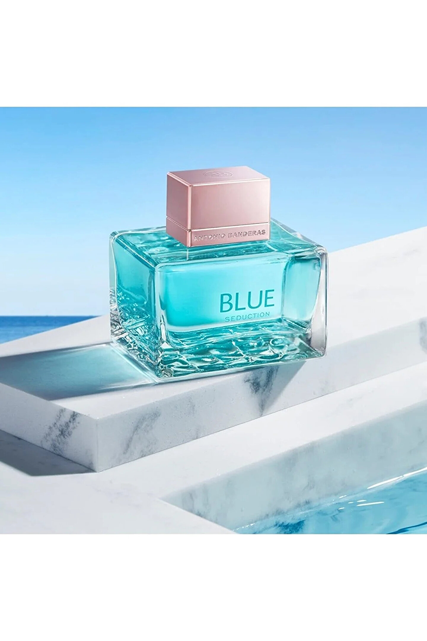Blue Seduction Edt 80ml Blue Seduction muhteşem turkuaz rengi ve benzersiz kokusuyla size yaz günlerini yaşatacak.; Kavun, bergamot, armut ve menekşe yapraklarıyla meyveli bir açılış yapan Antonio Banderas Blue Seduction, denizin kıvrılan dalgaları gibi serin ve ferah bir parfüm.; Orta notalarında ise şakayık, gardenya, yasemin ve inci çiçeğinin karışımı tropik bir esinti yaratan kocaman bir beyaz buketle karşılayacak.; Parfüm dip notalarında misk, paçuli ve aselbent ile derinlik ve tensellik kazanıyor.