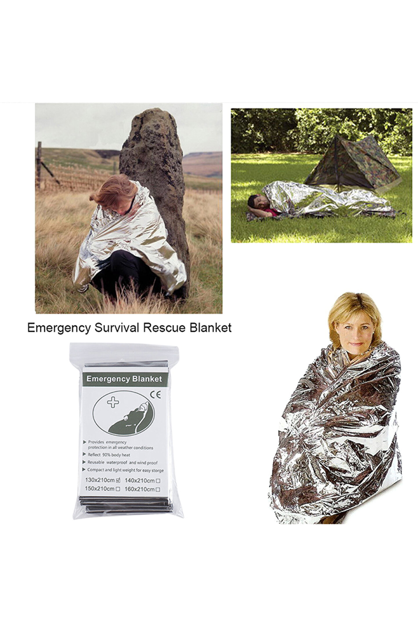 130x210cm Folyo Mylar Termal Battaniye Vücut Isısını Korur Acil Termal Battaniye Gümüş Folyo Boş...