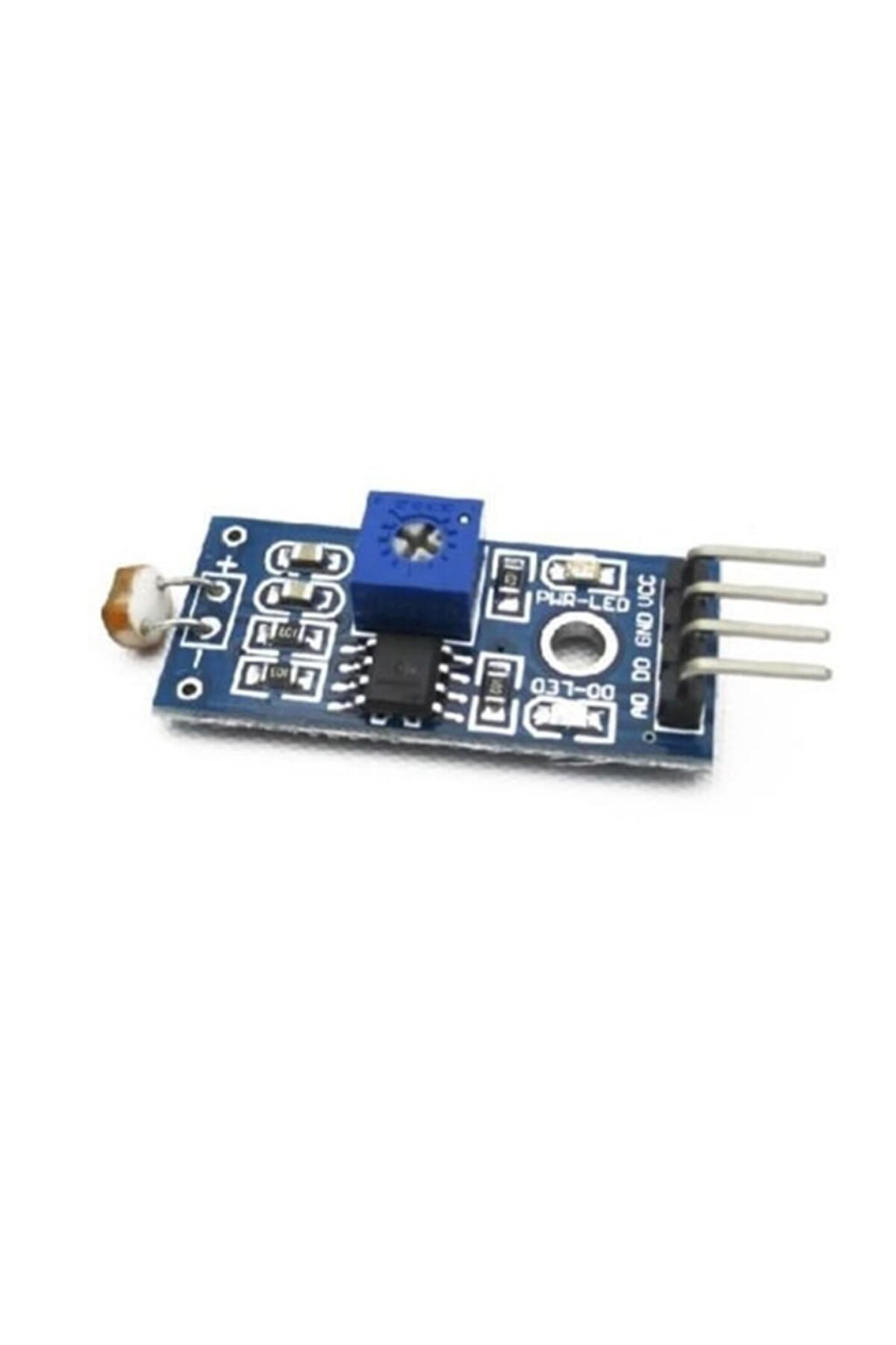 Arduino LDR Işık Sensörü Kartı Modül, LDR Modülü Bu ışık sensörü kartı üzerinde 5 mm LDR bulunmaktadır. ; Ortam ışığına göre dijital ve analog çıkış veren bu kart karanlık durumda 0V, sensör üzerine ışık düştüğü durumda ise 5V sinyal vermektedir. ; Üzerindeki pot ile hassasiyet ayarı yapılabilir. ; Çalışma gerilimi 5V%27tur. ; Ürün dahilinde jumper kablo bulunmamaktadır. ; Bir çok mikrodenetleyici platformu ile beraber kullanılabilmektedir. ; Oldukça kolay kullanımlı bir ürün olan LDR sensör kartı başta Arduino platformları olmak üzere bir çok mikrodenetleyici kartı ile beraber kullanılabilmektedir.;